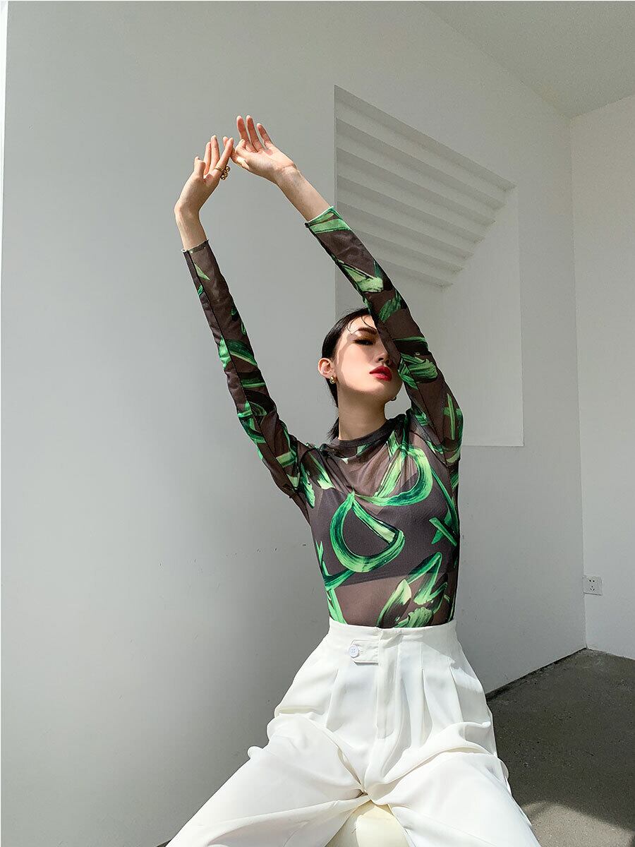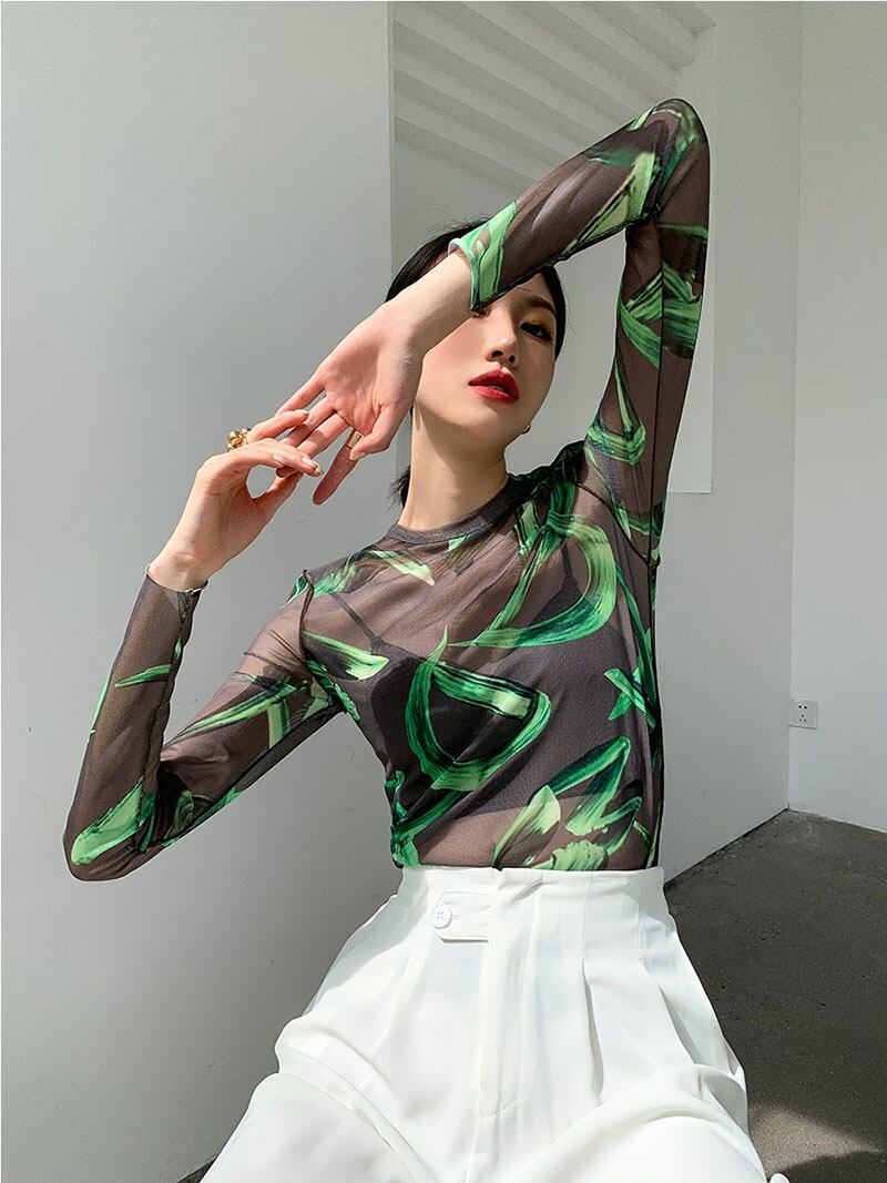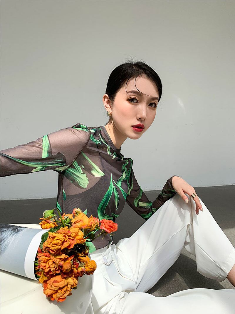 レディース トップス Tシャツ ラウンドネック スリム 細身 ストレート ストリート シースルー かわいい 大人可愛い きれいめ カジュアル 上品 おしゃれ レトロ ガーリー ラブリー キュート 花柄 夏 デート お出かけ パーティー イベント 女子会 韓国 コーデ 普段使い 着回し モテ トレンド 流行 インスタ映え フリーサイズ ブラック