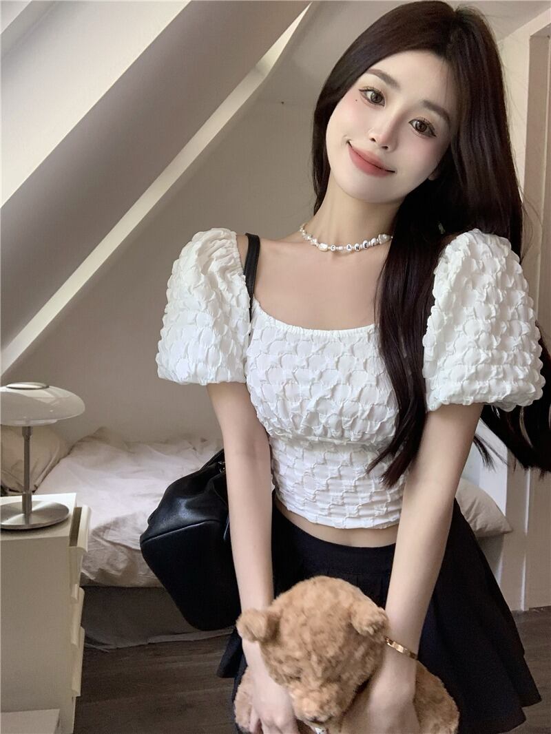 レディース トップス カットソー デート ショート ショート丈 袖あり 半袖 パフスリーブ スクエアネック 襟なし タイト 切り替えデザイン かわいい 大人可愛い きれいめ シンプル カジュアル 上品 おしゃれ お洒落 レトロ 大人女子 こなれ感 ラフ ラブリー キュート ガーリー 個性的 クール モード系 エレガント モダン 主役級 存在感 抜け感 レディース デート お出かけ 女子会 休日 着回し 普段使い ファッション コーデ スタイル モテ プレゼント 定番 トレンド インスタ映え 色展開