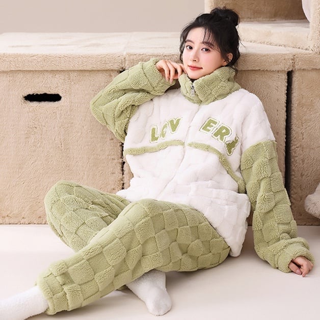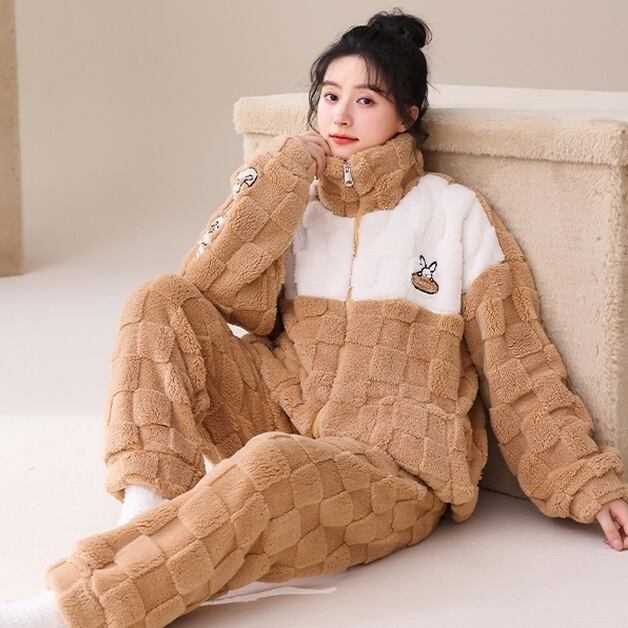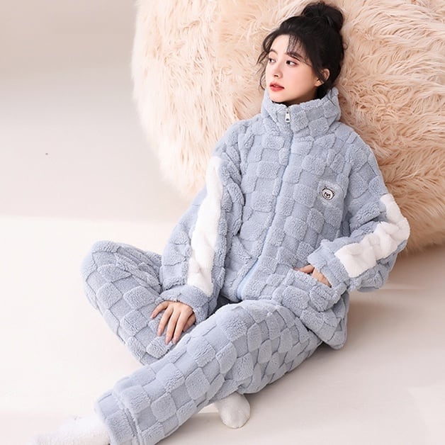 パジャマ ナイトウエア 上下セット 長袖 ハイネック 前開き ファスナー 長ズボン ロングパンツ ウエストゴム 部屋着 ルームウエア もこもこ かわいい 大人可愛い きれいめ シンプル 上品 おしゃれ かっこいい レトロ きちんと こなれ感 個性的 主役級 存在感 抜け感 秋 冬 ナチュラル ベーシック キュート クール メンズライク ガーリー レディース 女性用 ママ デート お出かけ お泊まり イベント 女子会 休日 ホテル アウトドア レイヤード 重ね着 普段使い 着回し M L XL 2XL