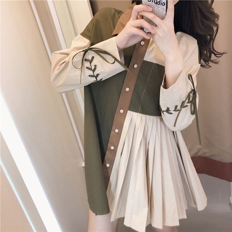 ワンピース ミニ丈ワンピース 長袖 襟付き 前開き ボタン アシンメトリー ミニ丈 プリーツ かわいい 大人可愛い きれいめ シンプル 上品 おしゃれ かっこいい レトロ きちんと こなれ感 個性的 主役級 存在感 抜け感 秋 冬 キュート ナチュラル ベーシック メンズライク レディース 女性用 OL 通勤 学生 通学 デート お出かけ お泊まり イベント 女子会 休日 カフェ ショッピング レストラン 旅行 リゾート コンパ レイヤード 重ね着 普段使い 着回し 脚長 S M L XL モテ