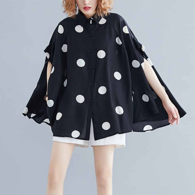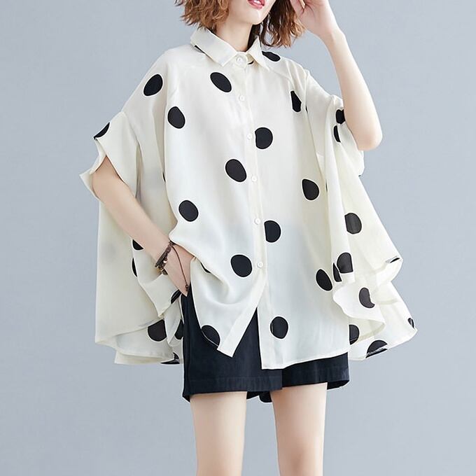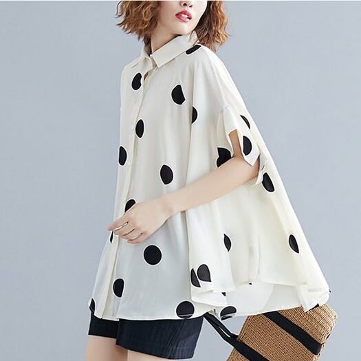トップス シャツ ミディアム丈 長袖 襟付き 前開き ボタンオーバーサイズ かわいい 大人可愛い きれいめ シンプル 上品 おしゃれ かっこいい レトロ きちんと こなれ感 個性的 主役級 存在感 抜け感 春 夏 ナチュラル ベーシック キュート クール メンズライク ドット柄 レディース 女性用 ママ OL 通勤 オフィス 学生 通学 デート お出かけ お泊まり イベント 女子会 休日 アウトドア カフェ ショッピング レストラン コンパ レイヤード 重ね着 普段使い 着回し ワンサイズ ゆったり