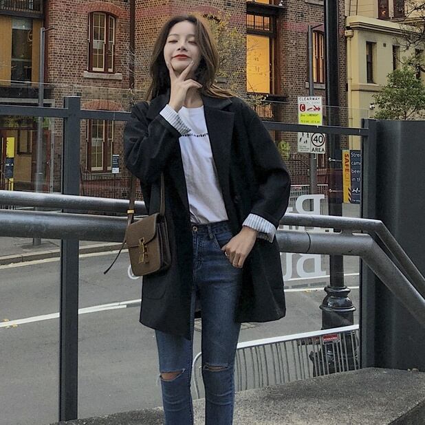 襟付きできちんと感がありながらも、前開きのデザインが取り入れるだけで抜け感を演出します。