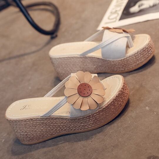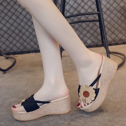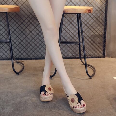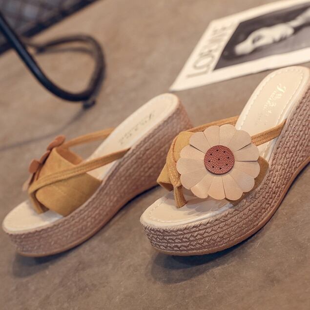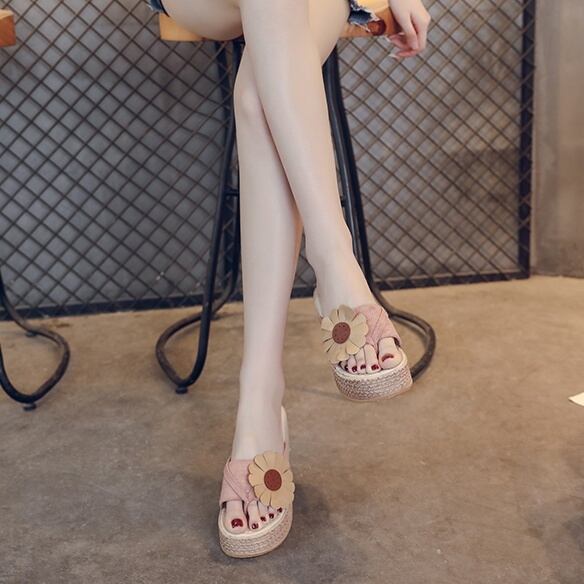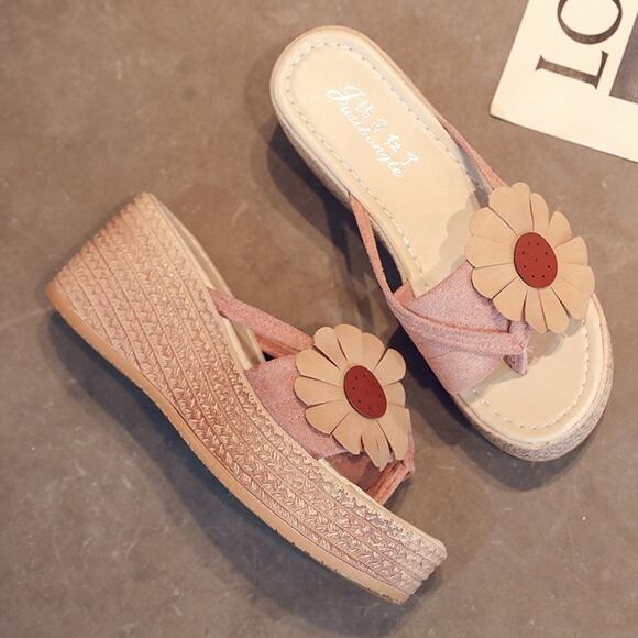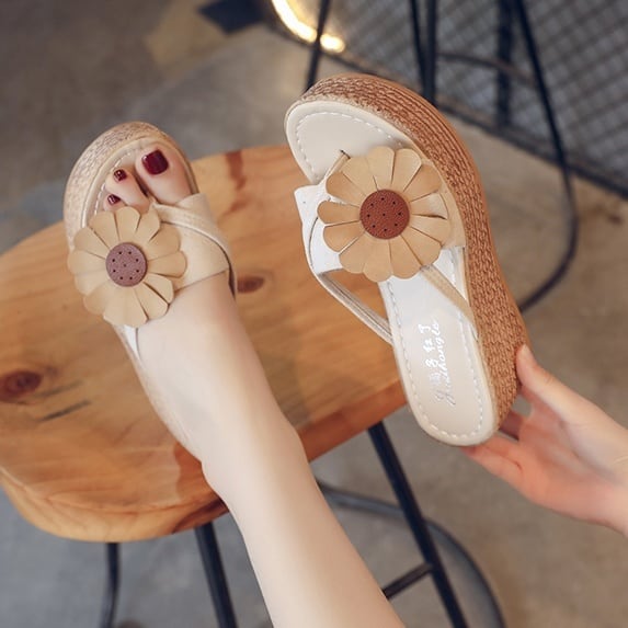 夏の日差しに映える、ひまわりモチーフの厚底ウェッジソールサンダル。