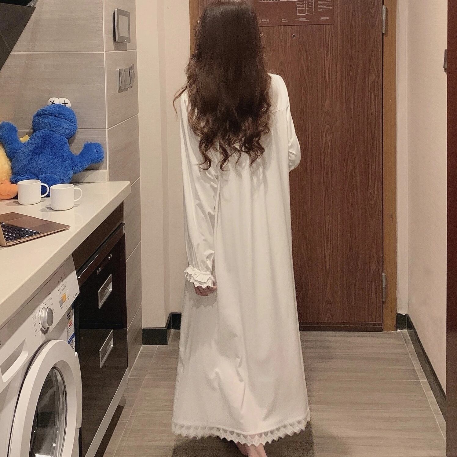ナイトウエア ナイトガウン ネグリジェ ロングワンピース ロング丈 長袖 スクエアネック レース かわいい 大人可愛い きれいめ シンプル 上品 おしゃれ かっこいい レトロ きちんと こなれ感 個性的 主役級 存在感 抜け感 オールシーズン ナチュラル ベーシック キュート クール メンズライク ガーリー セクシー 無地 レディース 女性用 ママ マタニティ デート お出かけ お泊まり イベント 女子会 休日 ホテル レイヤード 重ね着 普段使い 着回し ゆったり 楽ちん M L XL 2XL モテ