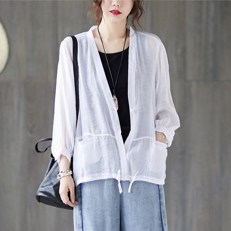 トップス シャツ ミディアム丈 長袖 Vネック 前開き ボタン シースルー 薄手 かわいい 大人可愛い きれいめ シンプル 上品 おしゃれ かっこいい レトロ きちんと こなれ感 個性的 主役級 存在感 抜け感 春 夏 ナチュラル ベーシック キュート クール メンズライク 無地 レディース 女性用 ママ OL 通勤 オフィス 学生 通学 デート お出かけ お泊まり イベント 女子会 休日 アウトドア カフェ ショッピング レストラン コンパ レイヤード 重ね着 普段使い 着回し ワンサイズ ゆったり