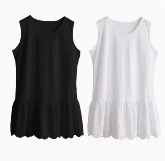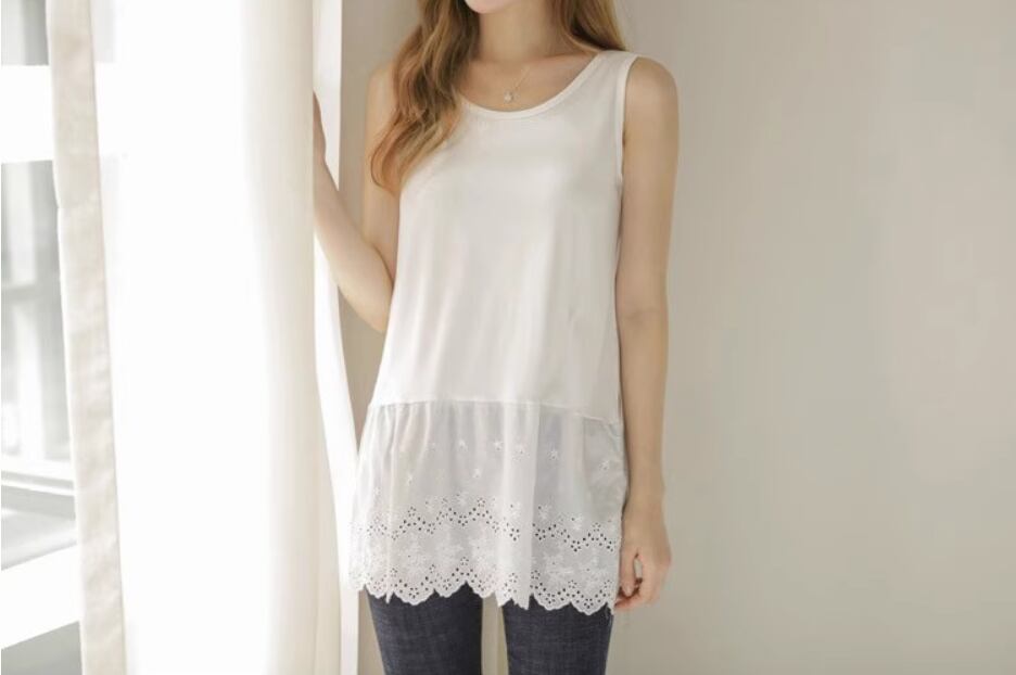 裾レースタンクトップ トップス 白トップス ラウンドネック レース 綿 かわいい 大人可愛い シンプル カジュアル おしゃれ お洒落 ガーリー 無地 春 夏 10代 20代 30代 40代 レディース 女性用 お出かけ 休日 着回し 普段使い 重ね着 M L XL 2XL 白 ホワイト 黒 ブラック