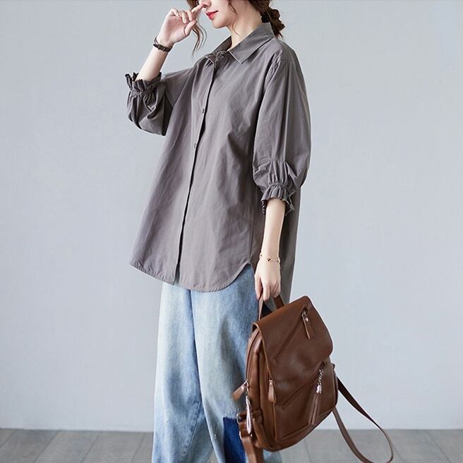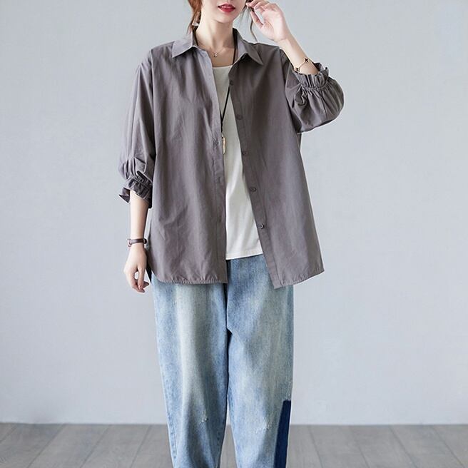トップス シャツ ミディアム丈 7分袖 角襟 前開き ボタン かわいい 大人可愛い きれいめ シンプル 上品 おしゃれ かっこいい レトロ きちんと こなれ感 個性的 主役級 存在感 抜け感 春 夏 秋 ナチュラル ベーシック キュート クール メンズライク 無地 レディース 女性用 ママ OL 通勤 オフィス ビジネス 学生 通学 デート お出かけ お泊まり イベント 女子会 休日 アウトドア カフェ ショッピング レストラン コンパ レイヤード 重ね着 普段使い 着回し M L XL 2XL