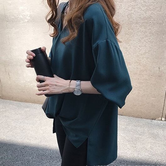 トップス シャツ シフォンシャツ ミディアム丈 プルオーバー 長袖 サイドスリット かわいい 大人可愛い きれいめ シンプル 上品 おしゃれ かっこいい レトロ きちんと こなれ感 個性的 主役級 存在感 抜け感 オールシーズン ナチュラル ベーシック クール メンズライク フォーマル 無地 レディース 女性用 ママ OL 通勤 オフィス 学生 通学 デート お出かけ お泊まり イベント 女子会 休日 アウトドア カフェ ショッピング レストラン コンパ レイヤード 重ね着 普段使い 着回し モテ