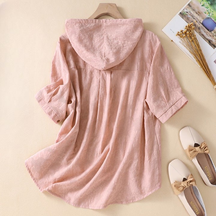 トップス パーカー ミディアム丈 半袖 ハーフボタン 薄手 かわいい 大人可愛い きれいめ シンプル 上品 おしゃれ かっこいい レトロ ラフ ルーズ こなれ感 個性的 主役級 存在感 抜け感 春 夏 ナチュラル ベーシック キュート クール メンズライク 無地 レディース 女性用 ママ マタニティ OL 通勤 オフィス 学生 通学 デート お出かけ お泊まり イベント 女子会 休日 アウトドア カフェ ショッピング レストラン コンパ レイヤード 重ね着 普段使い 着回し M L XL 2XL ゆったり