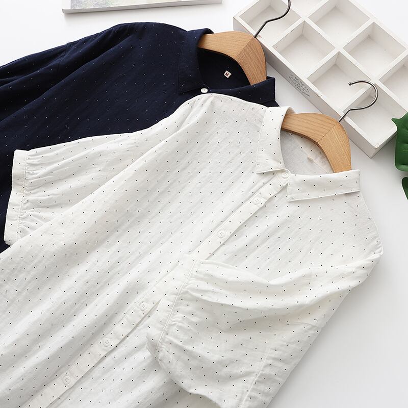 トップス シャツ ショート丈 半袖 襟付き 前開き ボタン かわいい 大人可愛い きれいめ シンプル 上品 おしゃれ かっこいい レトロ ラフ ルーズ きちんと こなれ感 個性的 主役級 存在感 抜け感 春 夏 ナチュラル ベーシック クール キュート メンズライク ドット柄 レディース 女性用 ママ OL 通勤 オフィス 学生 通学 デート お出かけ お泊まり イベント 女子会 休日 アウトドア カフェ ショッピング レストラン コンパ レイヤード 重ね着 普段使い 着回し ワンサイズ ゆったり 楽ちん