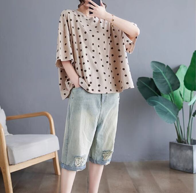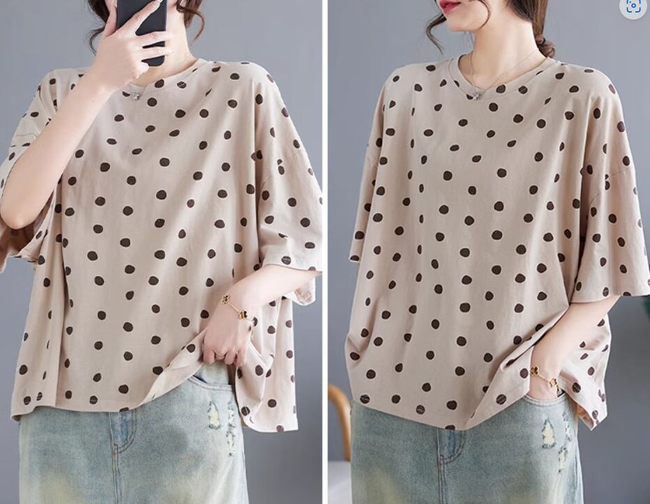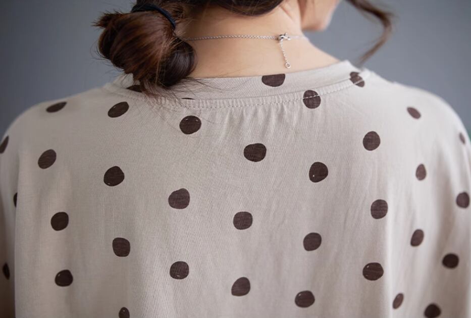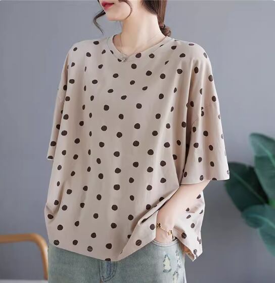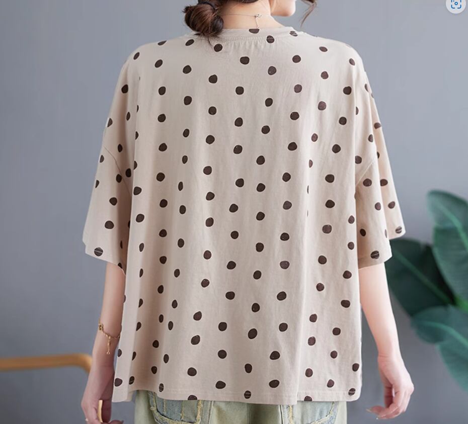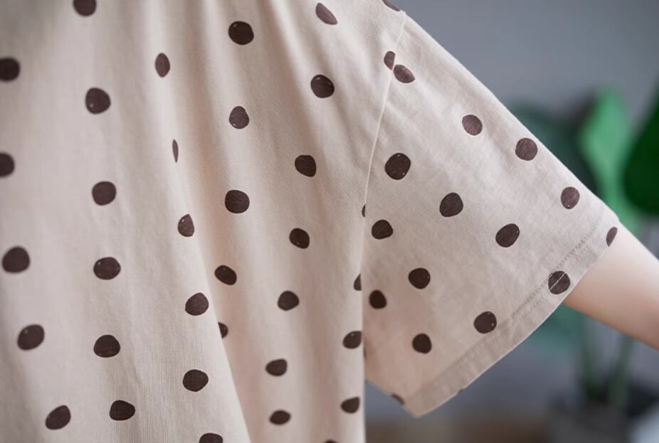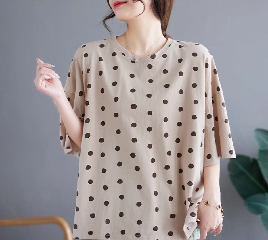 ランダムドット柄半袖プルオーバー トップス プルオーバー 半袖 ラウンドネック ストレート かわいい 大人可愛い カジュアル とろみ感 ドット柄 春 夏 10代 20代 30代 40代 レディース 女性用 ママ お出かけ 休日 着回し 普段使い 楽ちん M L XL 2XL アプリコット