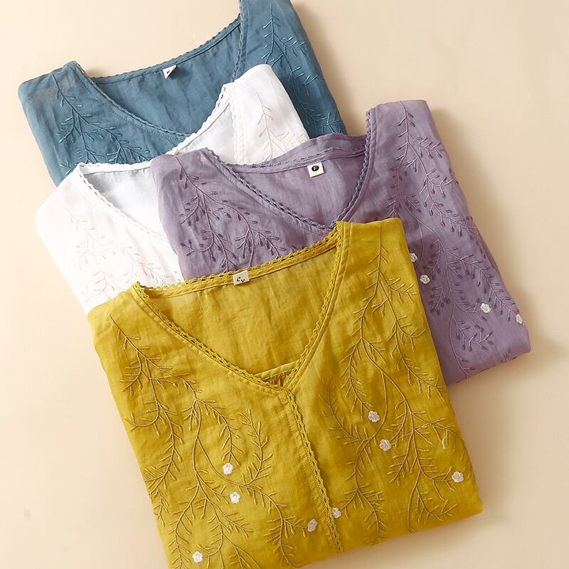 トップス シャツ ブラウス ミディアム丈 7分袖 Vネック 刺繡 透け感 薄手 かわいい 大人可愛い きれいめ シンプル 上品 おしゃれ かっこいい レトロ きちんと こなれ感 個性的 主役級 存在感 抜け感 春 夏 ナチュラル ベーシック キュート ガーリー エレガント 無地 レディース 女性用 ママ OL 通勤 オフィス 学生 通学 デート お出かけ お泊まり イベント 女子会 休日 アウトドア カフェ ショッピング レストラン コンパ レイヤード 重ね着 普段使い 着回し M L XL 2XL