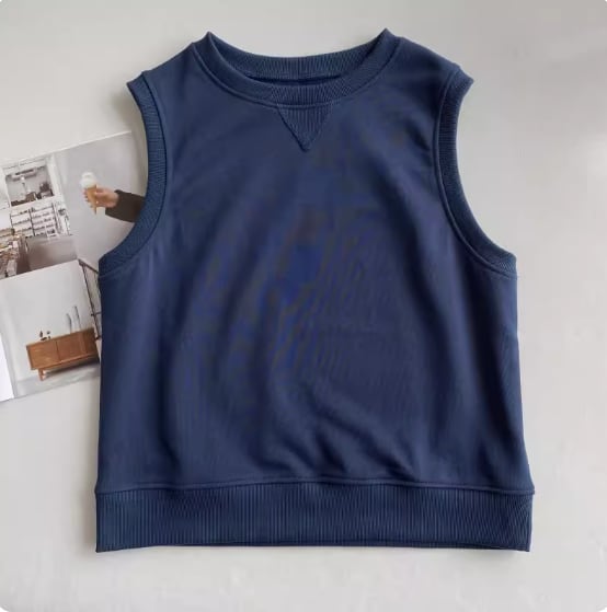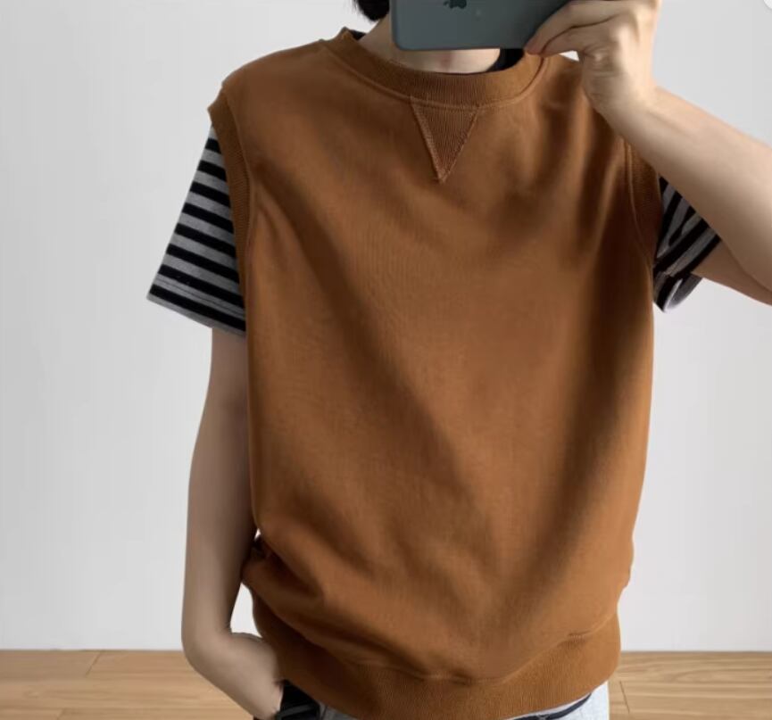 トップス プルオーバー ベスト ノースリーブ ラウンドネック ストレート リブ 伸縮性 綿 ポリエステル シンプル カジュアル おしゃれ こなれ感 ラフ 無地 春 夏 秋 10代 20代 30代 40代 50代 60代 レディース ママ お出かけ 休日 着回し 普段使い 重ね着 楽ちん M L 灰色 グレー ネイビー キャラメル