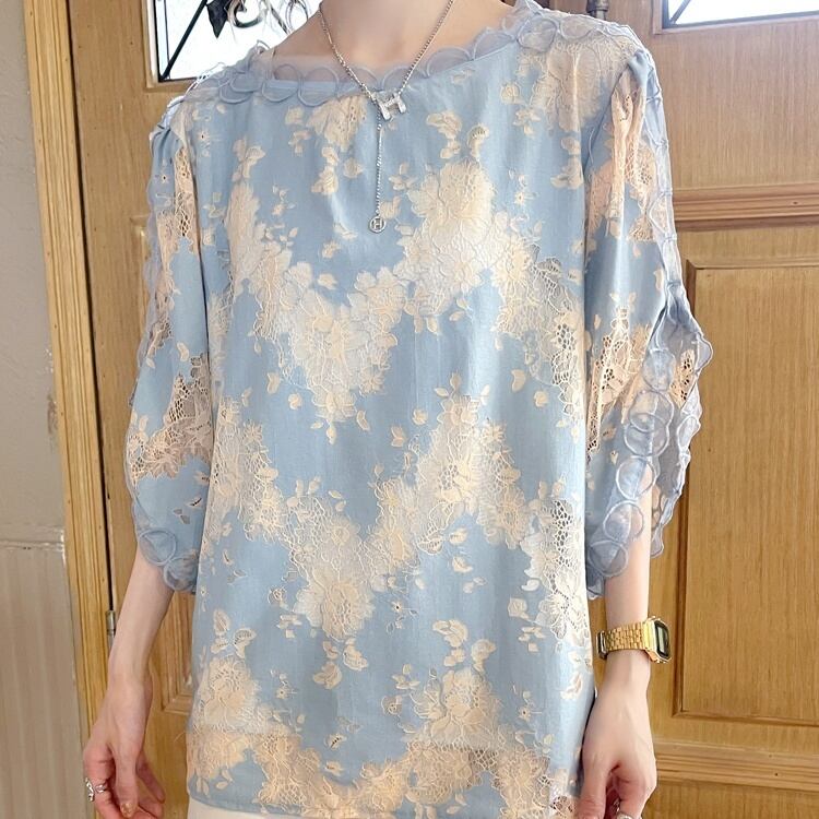 ラウンドネックのシースルー素材が女性らしい抜け感を演出し、周りと差をつけたい方にもおすすめです。