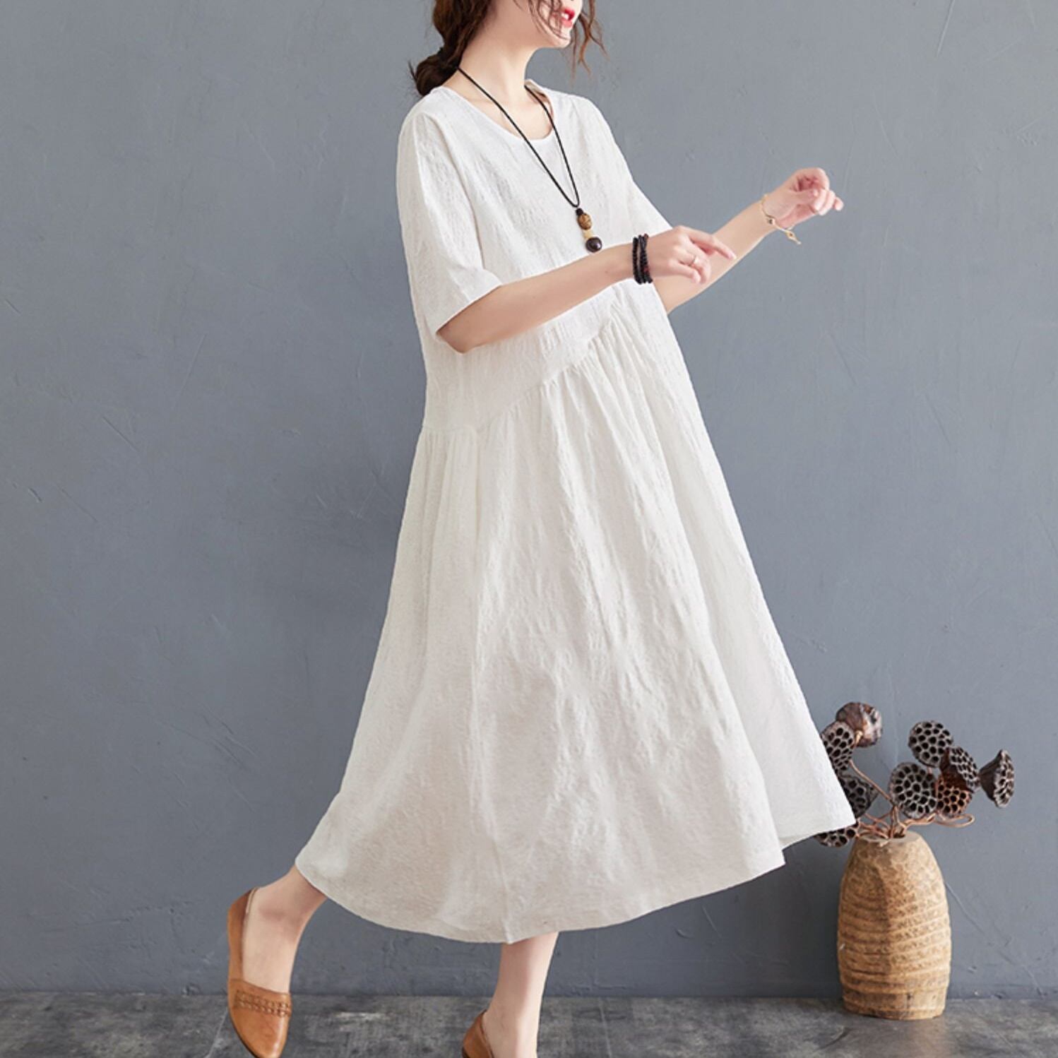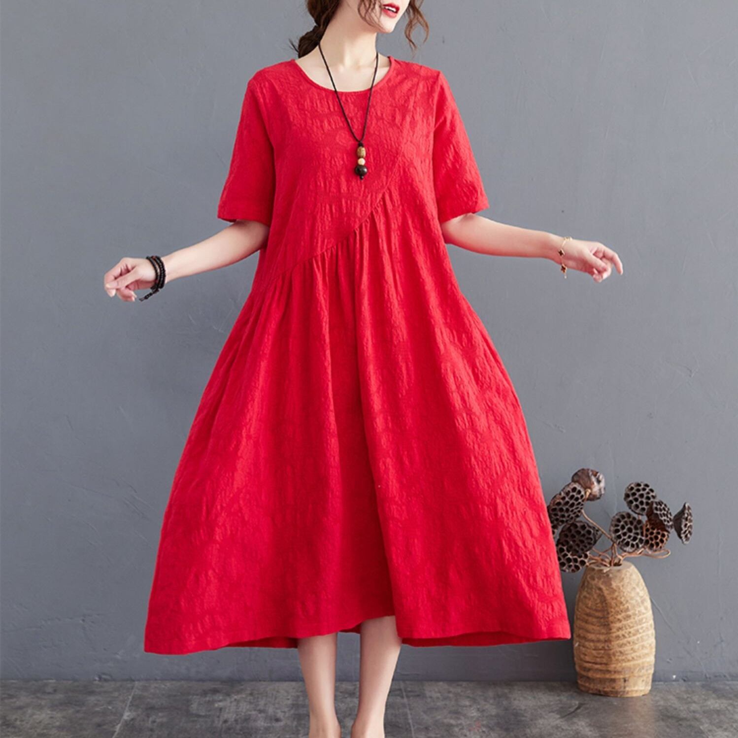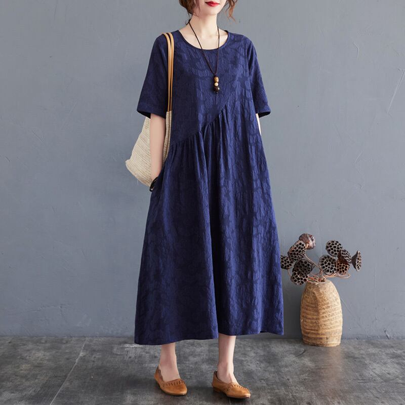 ワンピース ロングワンピース 半袖 ラウンドネック ポケット かわいい 大人可愛い きれいめ シンプル 上品 おしゃれ かっこいい レトロ ラフ きちんと こなれ感 個性的 主役級 存在感 抜け感 春 夏 キュート ナチュラル ベーシック メンズライク レディース 女性用 ママ マタニティ OL 通勤 学生 通学 デート お出かけ お泊まり イベント 女子会 休日 カフェ ショッピング レストラン 旅行 リゾート コンパ レイヤード 重ね着 普段使い 着回し M L XL 2XL ゆったり 楽ちん