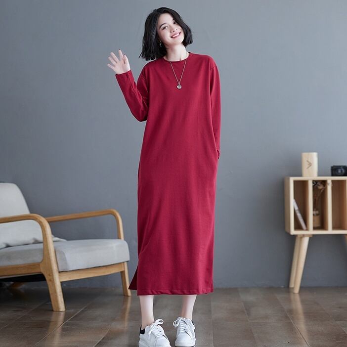 ワンピース ロングワンピース Tシャツワンピース 長袖 ラウンドネック かわいい 大人可愛い きれいめ シンプル 上品 おしゃれ かっこいい レトロ ラフ こなれ感 個性的 主役級 存在感 抜け感 春 秋 冬 キュート ナチュラル ベーシック メンズライク レディース 女性用 ママ マタニティ OL 通勤 学生 通学 デート お出かけ お泊まり イベント 女子会 休日 カフェ ショッピング レストラン 旅行 リゾート コンパ レイヤード 重ね着 普段使い 着回し M L XL 2XL ゆったり 楽ちん