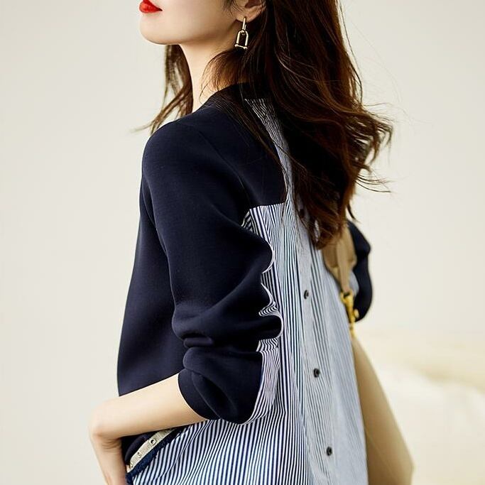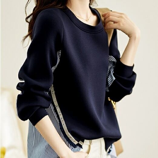 トップス カットソー シャツ 長袖 ラウンドネック 切り替えデザイン 異素材ミックス かわいい 大人可愛い きれいめ シンプル 上品 おしゃれ かっこいい レトロ きちんと こなれ感 個性的 主役級 存在感 抜け感 オールシーズン ナチュラル ベーシック クール メンズライク 無地 レディース 女性用 ママ OL 通勤 オフィス 学生 通学 デート お出かけ お泊まり イベント 女子会 休日 アウトドア カフェ ショッピング レストラン コンパ レイヤード 重ね着 普段使い 着回し S M L XL