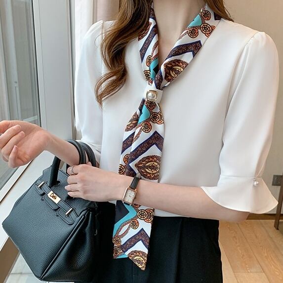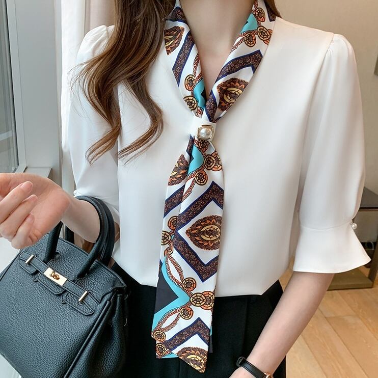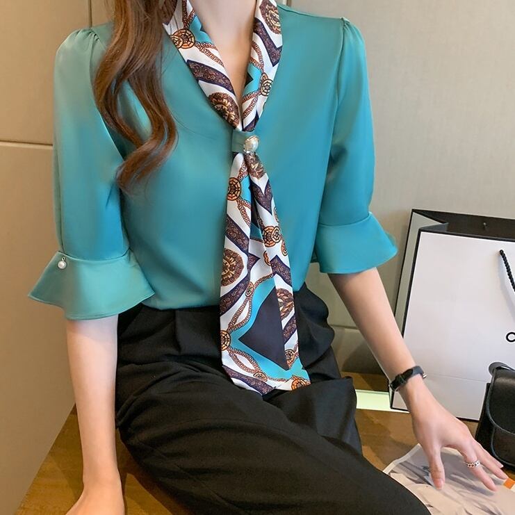 トップス シャツ シフォンシャツ ミディアム丈 プルオーバー 5分袖 ボウタイ かわいい 大人可愛い きれいめ シンプル 上品 おしゃれ かっこいい レトロ きちんと こなれ感 個性的 主役級 存在感 抜け感 オールシーズン ナチュラル ベーシック クール メンズライク フォーマル 無地 レディース 女性用 ママ OL 通勤 オフィス 学生 通学 デート お出かけ お泊まり イベント 女子会 休日 アウトドア カフェ ショッピング レストラン コンパ レイヤード 重ね着 普段使い 着回し S M L XL