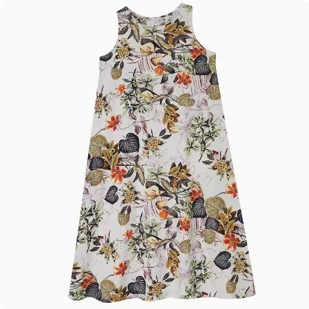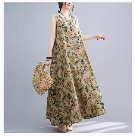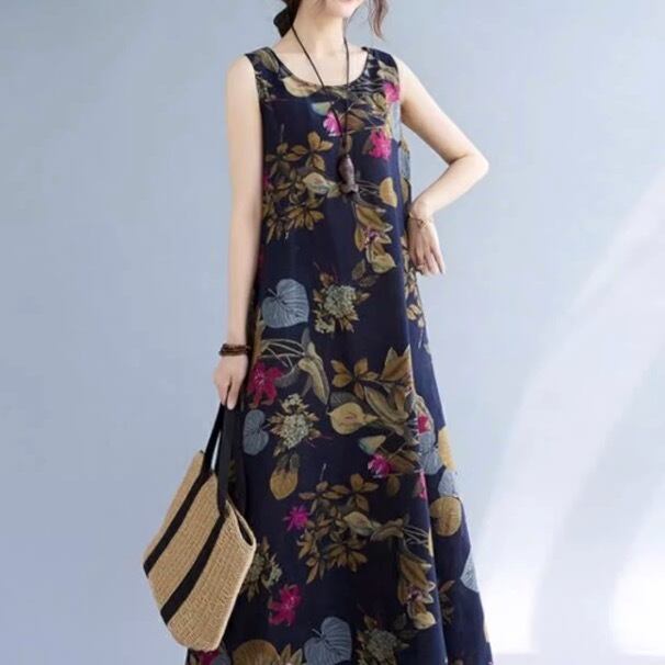 トレンド感満載のデザインが魅力の総柄ワンピース。ノースリーブの涼し気なデザインは、夏のリゾートやお出かけにピッタリ。Aラインのフレアシルエットが女性らしい華やかさを演出し、着るだけで一気におしゃれ度UP!ラウンドネックのシンプルなデザインは、どんなアクセサリーとも相性抜群です。