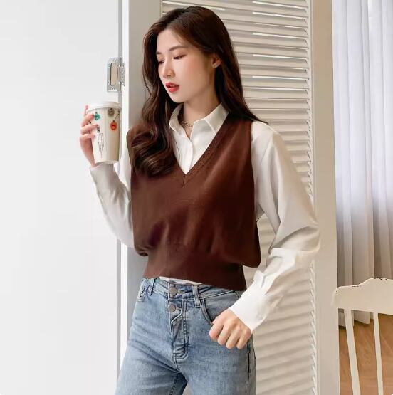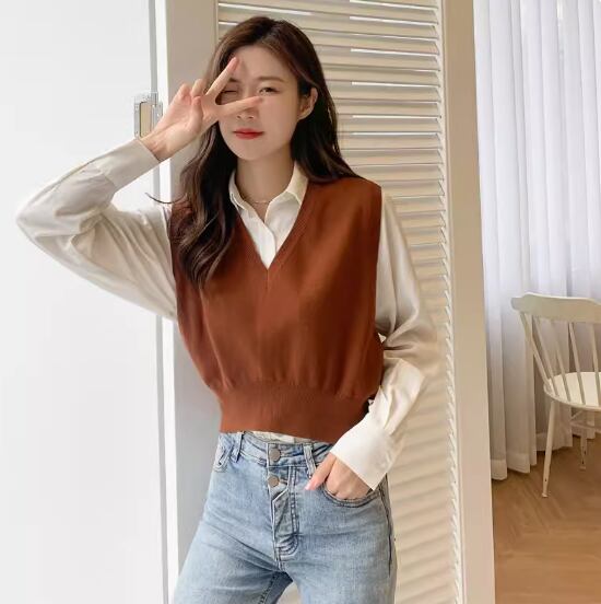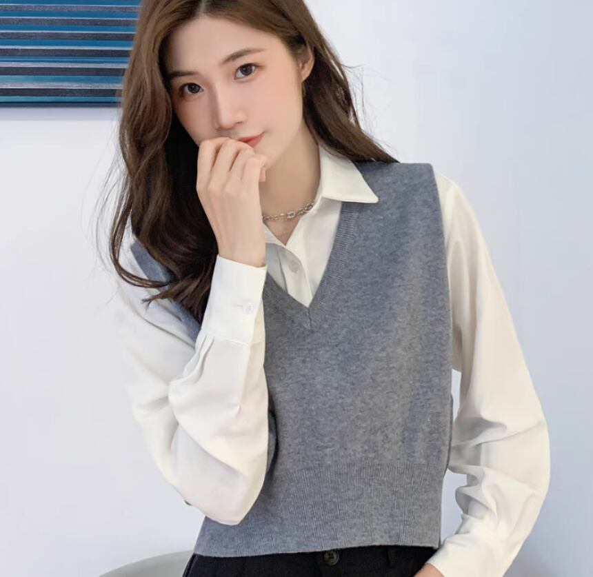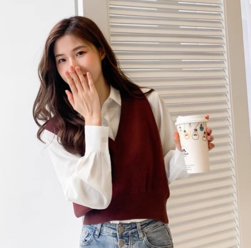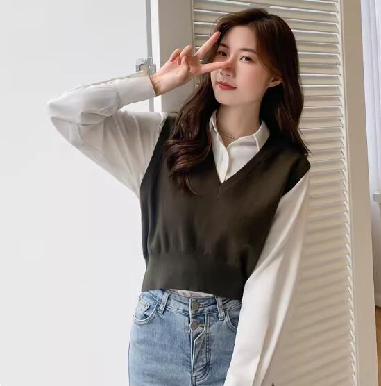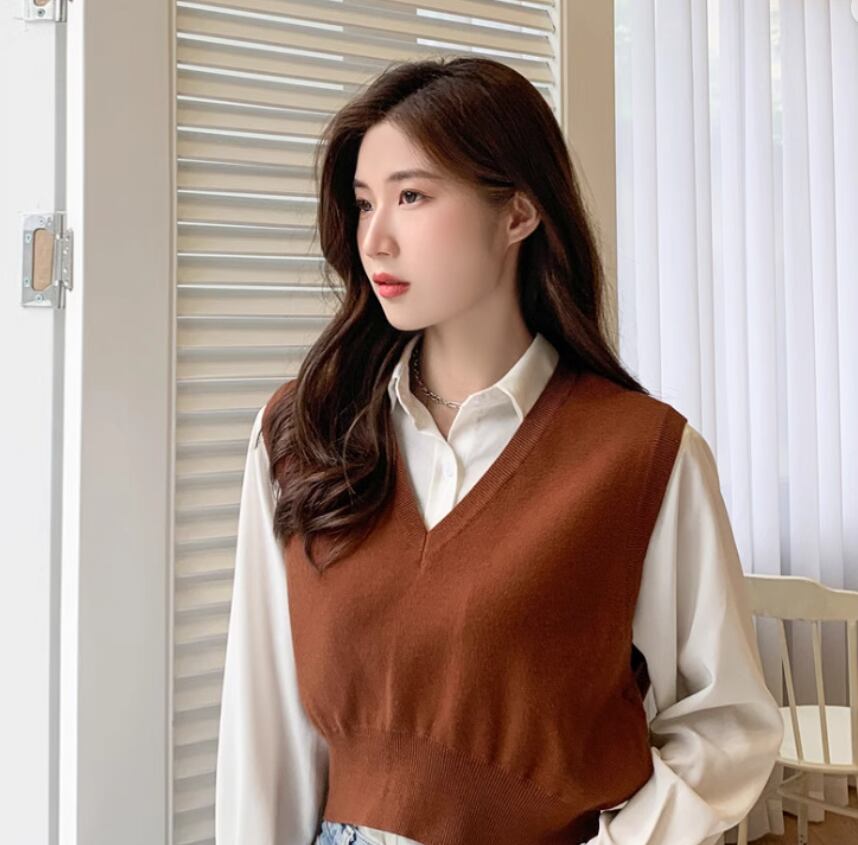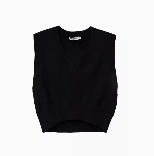ベーシックなデザインで着回し力抜群のショート丈ニットベスト