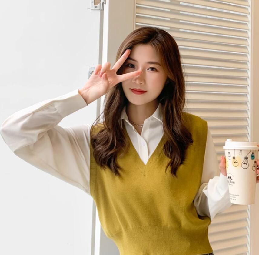 トップス プルオーバー ベスト ショート丈 袖なし ノースリーブ Vネック 伸縮性 シンプル カジュアル おしゃれ お洒落 無地 春 秋 10代 20代 30代 40代 レディース 女性用 お出かけ 休日 着回し 普段使い 重ね着 楽ちん S M L XL 黒 ブラック 茶色 ブラウン 灰色 グレー 黄色 カーキ イエロー ライトブラウン