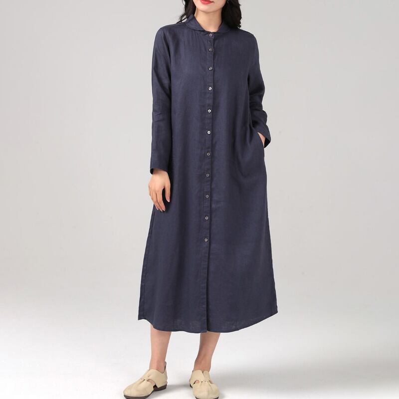 ワンピース ミモレ丈ワンピース 長袖 襟付き 前開き ボタン ポケット ミモレ丈 かわいい 大人可愛い きれいめ シンプル 上品 おしゃれ かっこいい レトロ きちんと こなれ感 個性的 主役級 存在感 抜け感 春 秋 冬 キュート ナチュラル ベーシック メンズライク 無地 レディース 女性用 ママ マタニティ OL 通勤 学生 通学 デート お出かけ お泊まり イベント 女子会 休日 カフェ ショッピング レストラン 旅行 リゾート コンパ レイヤード 重ね着 普段使い 着回し M L XL 2XL