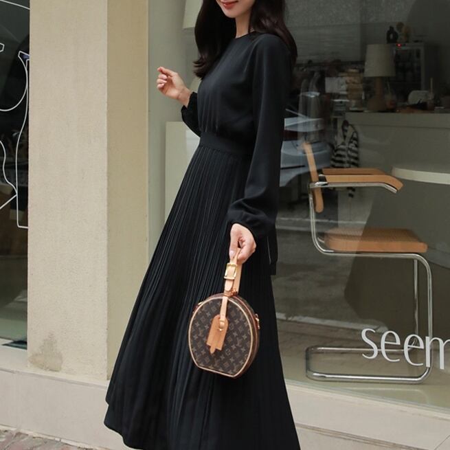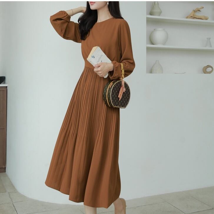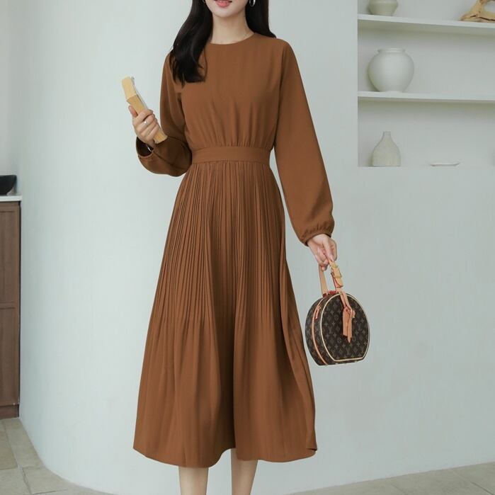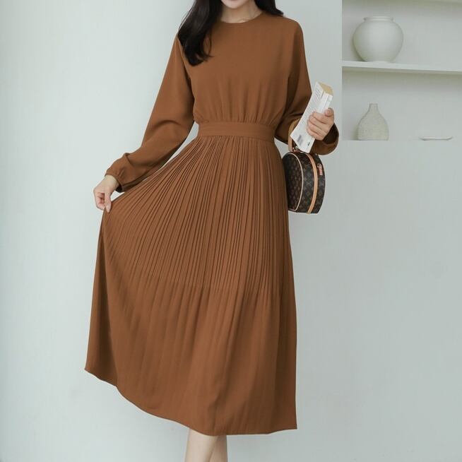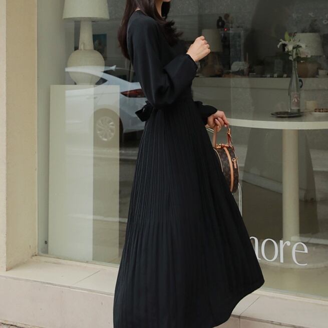 ワンピース ミディアム丈ワンピース 長袖 ラウンドネック ウエストリボン プリーツスカート かわいい 大人可愛い きれいめ シンプル 上品 おしゃれ かっこいい レトロ ラフ きちんと こなれ感 個性的 主役級 存在感 抜け感 オールシーズン キュート ナチュラル ベーシック フォーマル エレガント 無地 レディース 女性用 ママ OL 通勤 学生 通学 デート お出かけ お泊まり イベント 女子会 休日 カフェ ショッピング レストラン 旅行 リゾート コンパ レイヤード 重ね着 普段使い 着回し