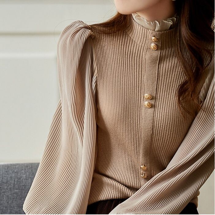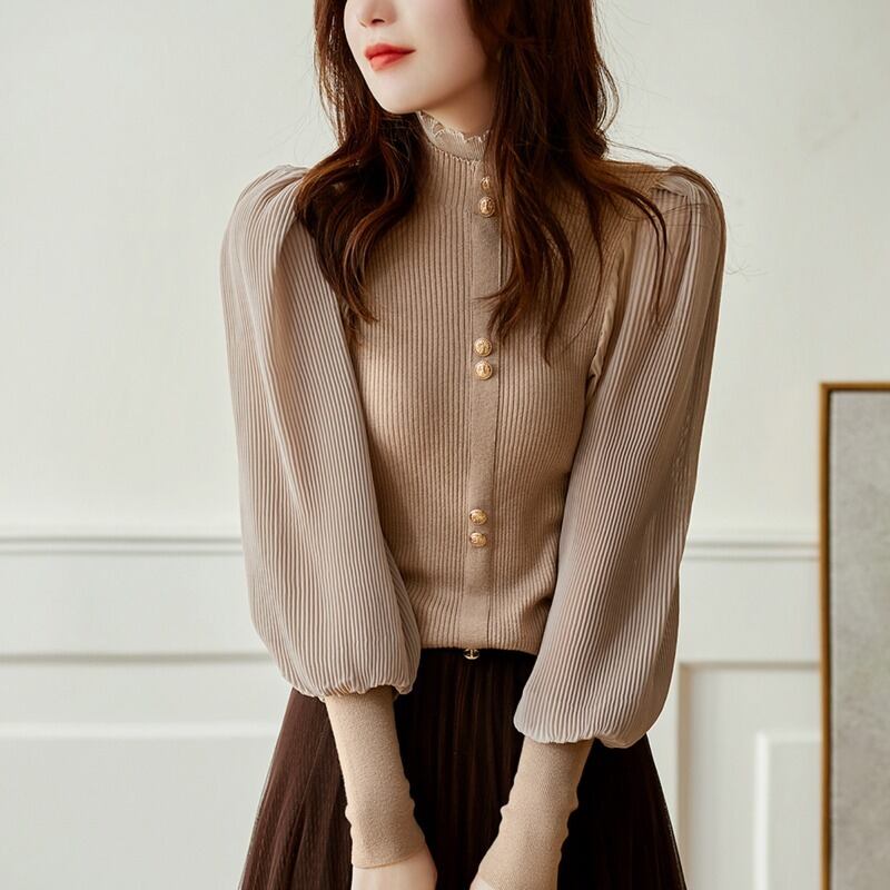 トップス ブラウス ミディアム丈 長袖 マトンスリーブ 前開き ボタン ハイネック フリル かわいい 大人可愛い きれいめ シンプル 上品 おしゃれ かっこいい レトロ きちんと こなれ感 個性的 主役級 存在感 抜け感 オールシーズン ナチュラル ベーシック キュート エレガント フォーマル レディース 女性用 ママ OL 通勤 オフィス 学生 通学 デート お出かけ お泊まり イベント 女子会 休日 アウトドア カフェ ショッピング レストラン コンパ レイヤード 重ね着 普段使い 着回し S M L