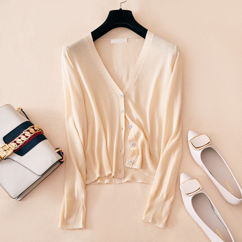 Vネックで前開きのミディアム丈カーディガンは、一枚で着るだけでおしゃれ度がアップします。