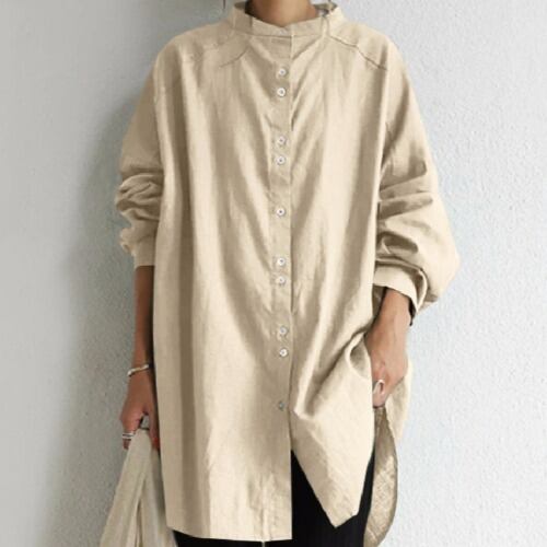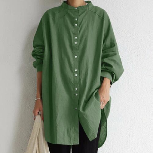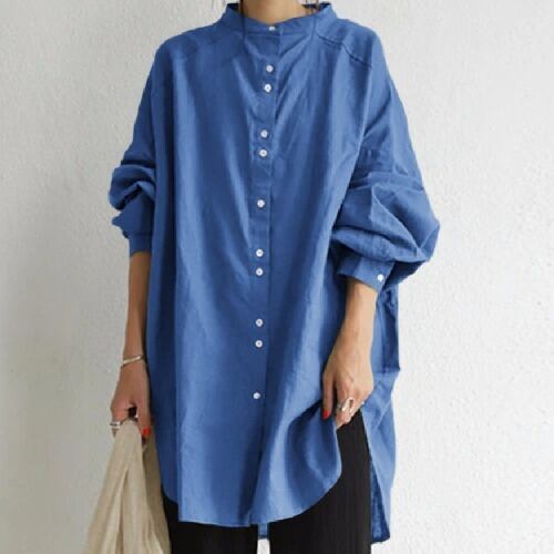 トップス シャツ ロング丈 長袖 クルーネック 前開き ボタン かわいい 大人可愛い きれいめ シンプル 上品 おしゃれ かっこいい レトロ きちんと こなれ感 個性的 主役級 存在感 抜け感 春 夏 ナチュラル ベーシック クール メンズライク 無地 レディース 女性用 ママ マタニティ OL 通勤 オフィス 学生 通学 デート お出かけ お泊まり イベント 女子会 休日 アウトドア カフェ ショッピング レストラン マタニティ コンパ レイヤード 重ね着 普段使い 着回し S M L XL ゆったり