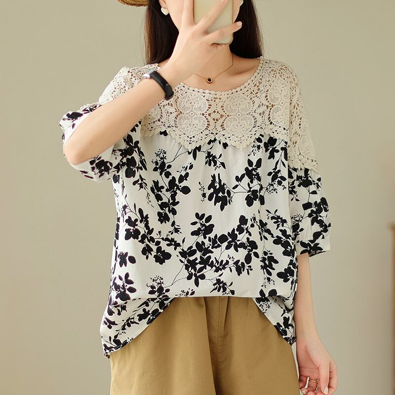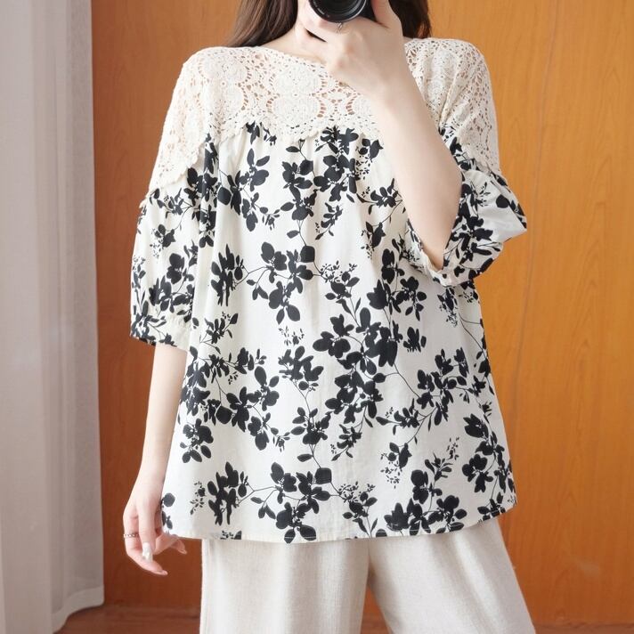 トップス ブラウス ミディアム丈 プルオーバー 5分袖 ラウンドネック 刺繡 透け感 切り替えデザイン かわいい 大人可愛い きれいめ シンプル 上品 おしゃれ かっこいい レトロ きちんと こなれ感 個性的 主役級 存在感 抜け感 ナチュラル ベーシック キュート ガーリー レディース 女性用 ママ OL 通勤 オフィス 学生 通学 デート お出かけ お泊まり イベント 女子会 休日 アウトドア カフェ ショッピング レストラン コンパ レイヤード 重ね着 普段使い 着回し M L XL 2XL