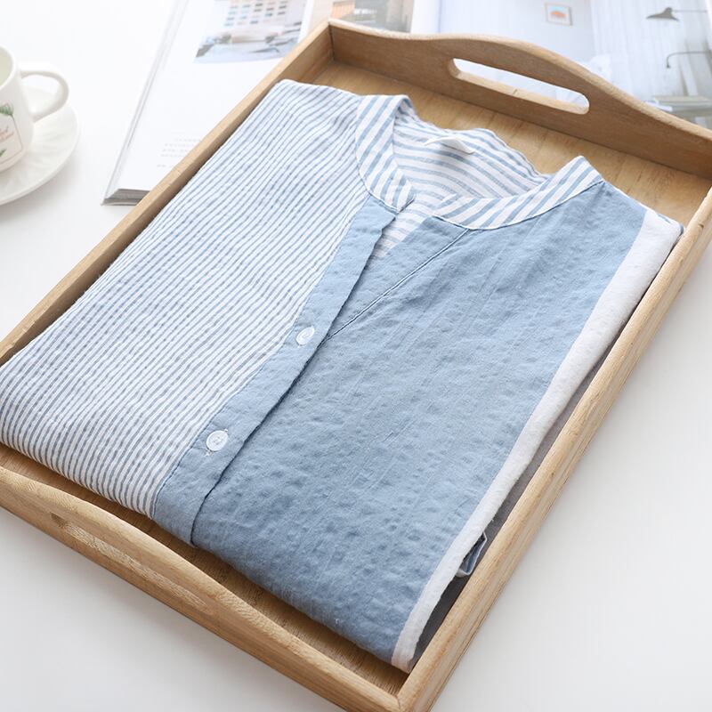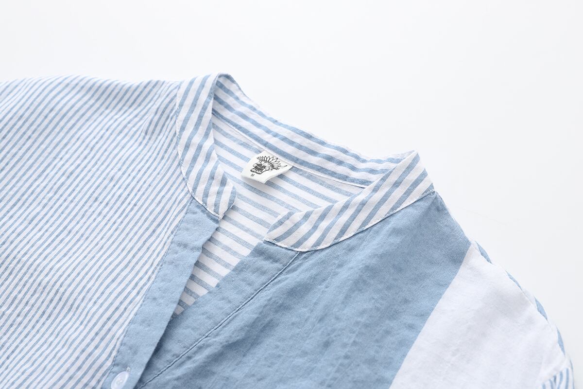 リラックス感溢れるリネンシャツ。Vネックと7分袖のデザインで、女性らしい抜け感を演出。軽やかなリネン素材で、春夏の暑い日にもぴったり。ストライプ柄がさりげないアクセントになり、どんなボトムスとも相性抜群。