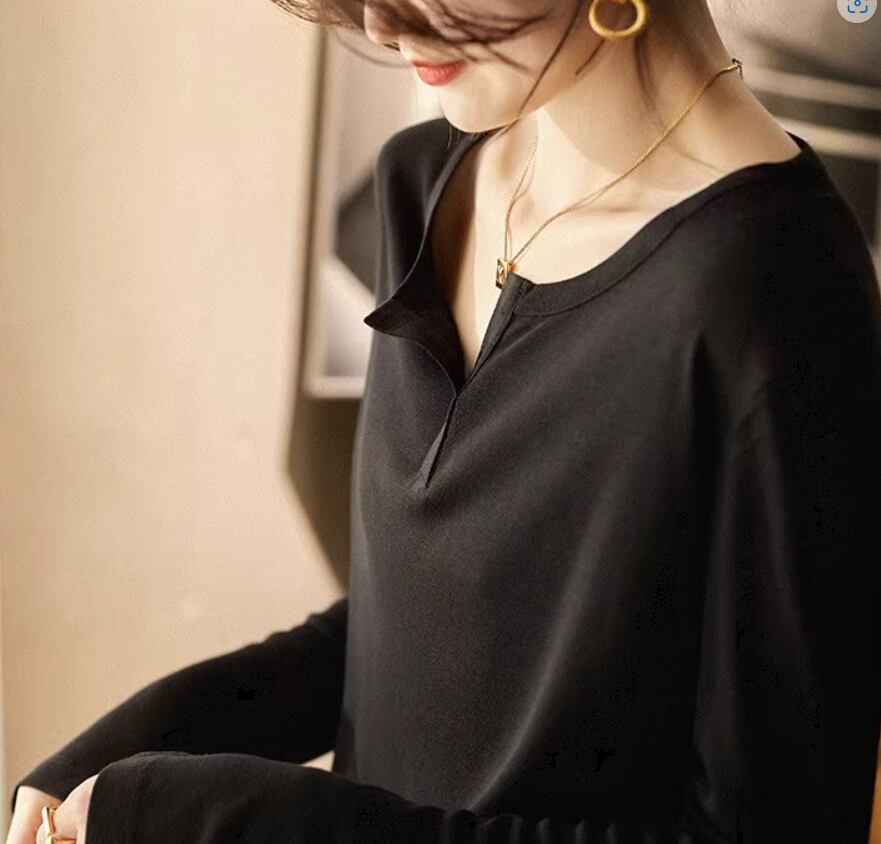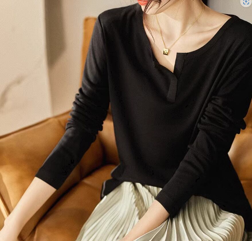 トップス カットソー 白トップス 袖あり 長袖 Vネック ストレート シンプル カジュアル 大人 おしゃれ お洒落 大人女子 こなれ感 ラフ 無地 春 夏 10代 20代 30代 40代 レディース 女性用 ママ お出かけ 休日 着回し 普段使い 重ね着 楽ちん S M L XL 白 ホワイト 黒 ブラック