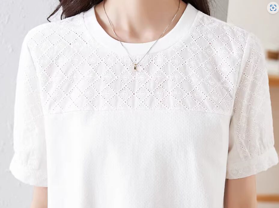 上部分の格子デザインがおしゃれな白Tシャツ