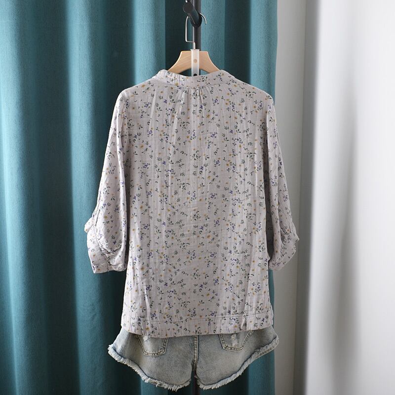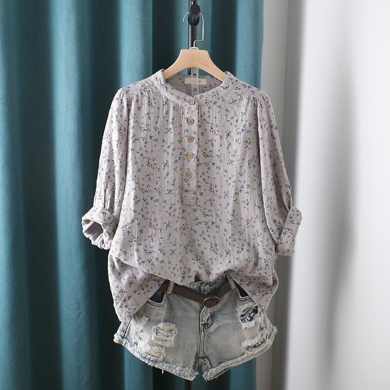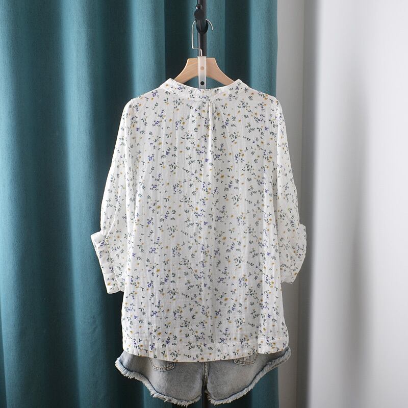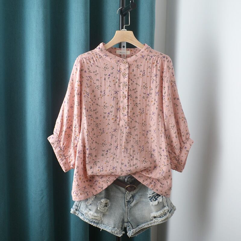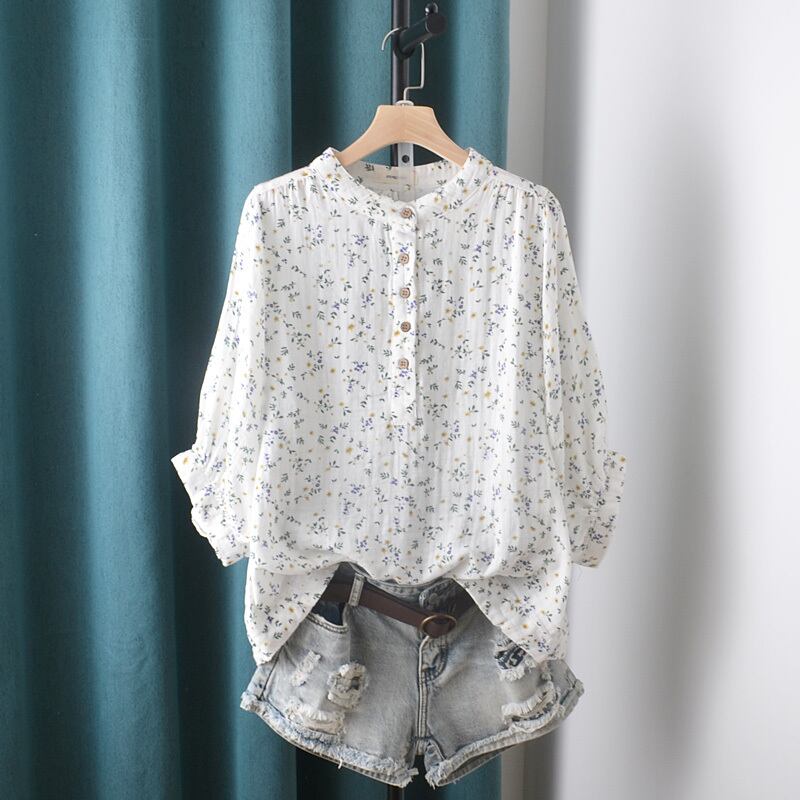 トップス シャツ ブラウス ミディアム丈 7分袖 ラウンドネック 前開き ボタン かわいい 大人可愛い きれいめ シンプル 上品 おしゃれ かっこいい レトロ きちんと こなれ感 個性的 主役級 存在感 抜け感 春 夏 ナチュラル ベーシック クール ガーリー 小花柄 レディース 女性用 ママ OL 通勤 オフィス 学生 通学 デート お出かけ お泊まり イベント 女子会 休日 アウトドア カフェ ショッピング レストラン マタニティ コンパ レイヤード 重ね着 普段使い 着回し ワンサイズ モテ
