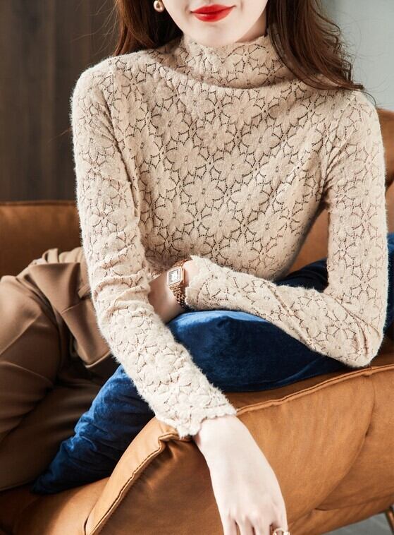 レディース トップス プルオーバー Tシャツ 長袖 ハイネック スリム 細身 ストレート レース 薄手 かわいい 大人可愛い きれいめ シンプル カジュアル 上品 おしゃれ ガーリー ルーズ エレガント ラブリー キュート フラワー 春 夏 通勤 学生 学校 通学 デート お出かけ 女子会 ショッピング 韓国 コーデ 楽ちん 普段使い 着回し モテ トレンド 流行 インスタ映え M L XL 2XL 3XL 大きいサイズ ゆったり ホワイト ブラック ベージュ ネイビー