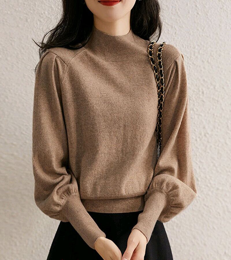 トップス セーター プルオーバー ミディアム丈 長袖 マトンスリーブ ボリューム袖 ハイネック かわいい 大人可愛い きれいめ シンプル 上品 おしゃれ かっこいい レトロ きちんと こなれ感 個性的 主役級 存在感 抜け感 春 秋 冬 キュート ナチュラル ベーシック レディース フォーマル 無地 女性用 ママ OL 通勤 オフィス 学生 通学 デート お出かけ お泊まり イベント 女子会 休日 アウトドア カフェ ショッピング レストラン コンパ レイヤード 重ね着 普段使い 着回し S M L