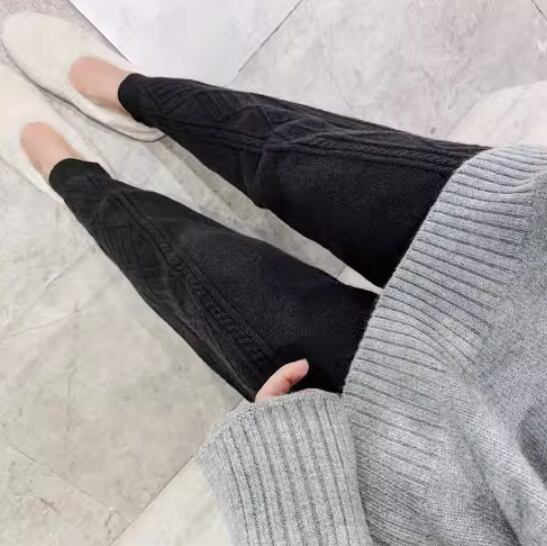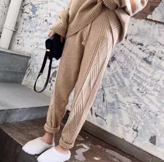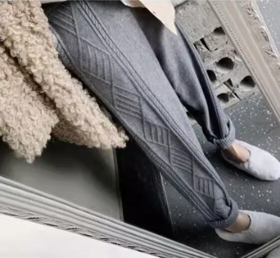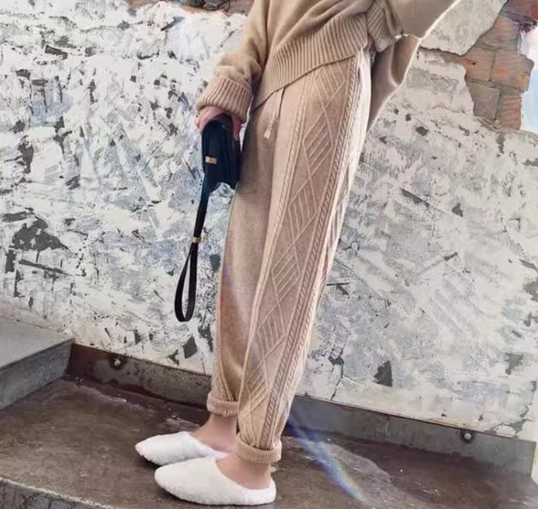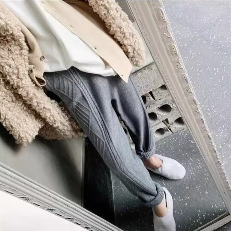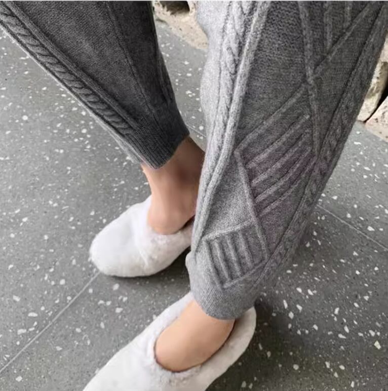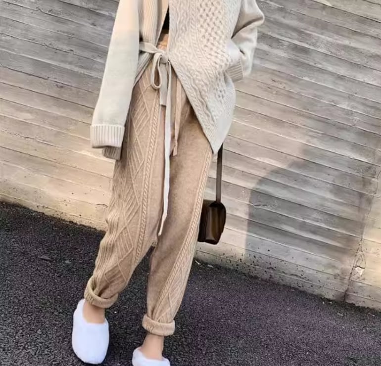 ケーブル編みデザインがおしゃれなニットパンツ