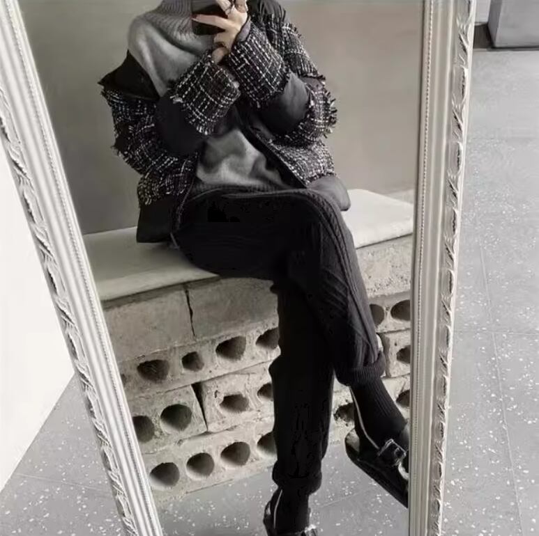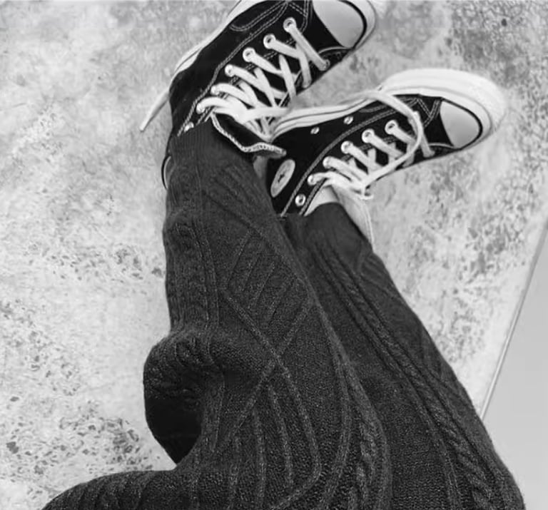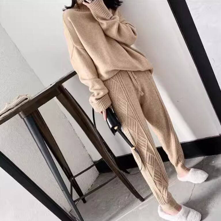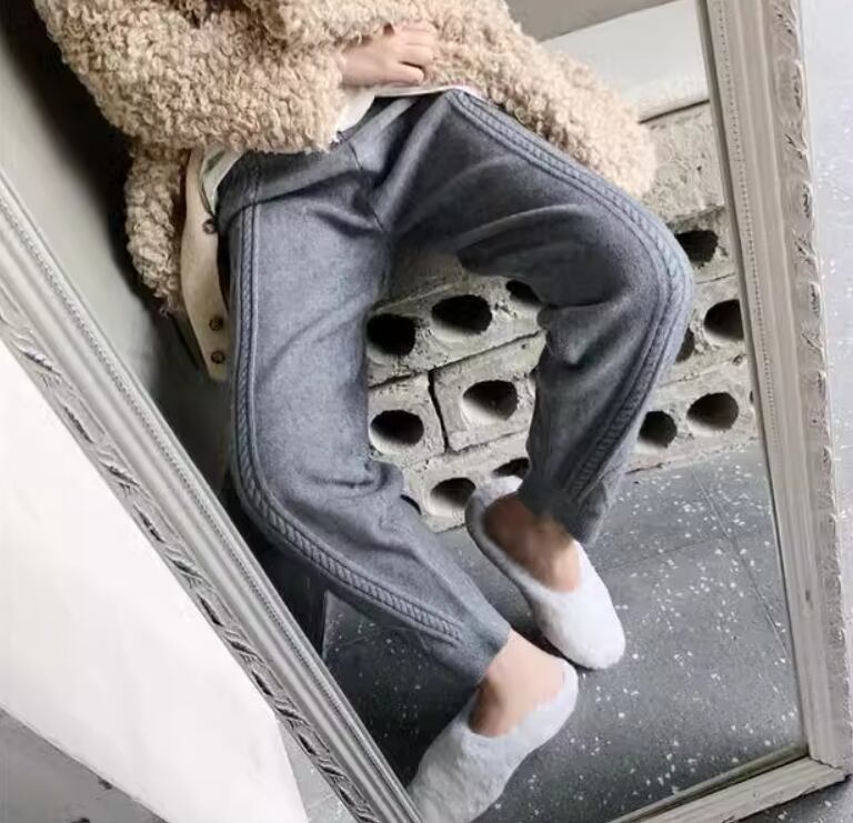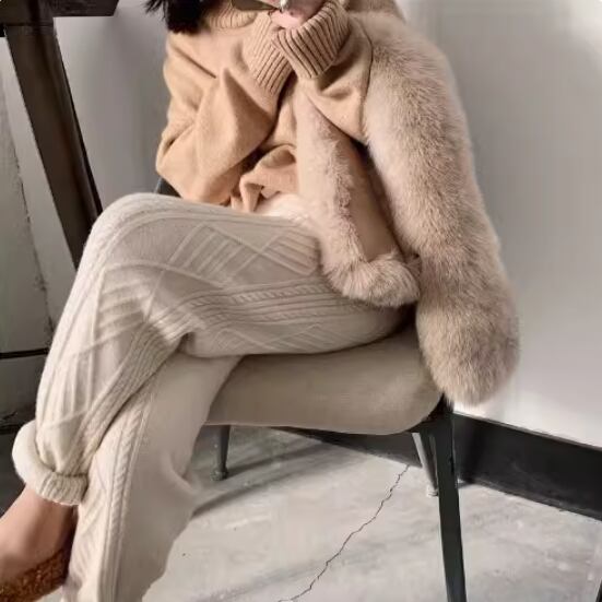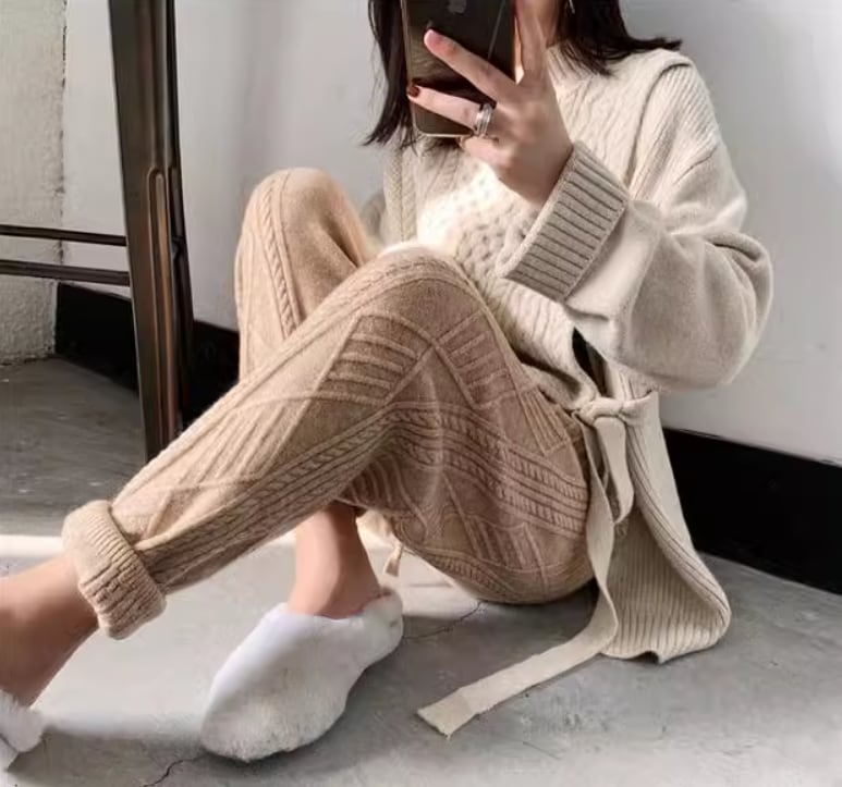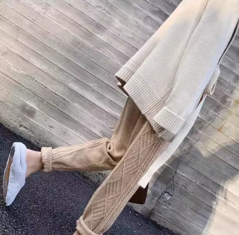 ケーブル編みデザインがおしゃれなニットパンツ