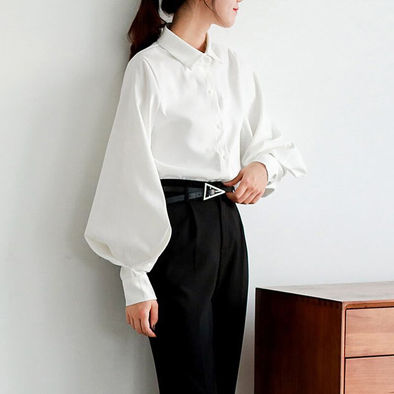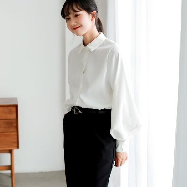 トップス シャツ ミディアム丈 長袖 ボリューム袖 マトンスリーブ 角襟 前開き ボタン かわいい 大人可愛い きれいめ シンプル 上品 おしゃれ かっこいい レトロ きちんと こなれ感 個性的 主役級 存在感 抜け感 オールシーズン ナチュラル ベーシック クール メンズライク 無地 レディース 女性用 ママ OL 通勤 オフィス 学生 通学 デート お出かけ お泊まり イベント 女子会 休日 アウトドア カフェ ショッピング レストラン コンパ レイヤード 重ね着 普段使い 着回し S M L XL