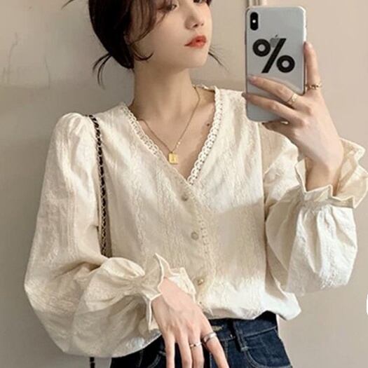 トップス シャツ ブラウス ミディアム丈 長袖 ボリューム袖 Vネック 前開き ボタン かわいい 大人可愛い きれいめ シンプル 上品 おしゃれ かっこいい レトロ きちんと こなれ感 個性的 主役級 存在感 抜け感 オールシーズン ナチュラル ベーシック フォーマル ガーリー レディース 女性用 ママ OL 通勤 オフィス 学生 通学 デート お出かけ お泊まり イベント 女子会 休日 アウトドア カフェ ショッピング レストラン コンパ レイヤード 重ね着 普段使い 着回し S M L XL モテ