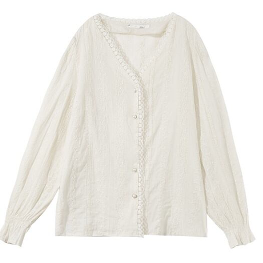 柔らかな風合いと大人可愛いデザインが魅力のブラウス。