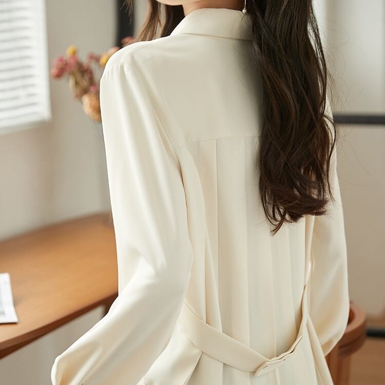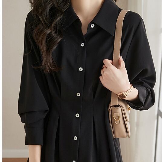 トップス シャツ ミディアム丈 長袖 角襟 前開き ボタン ウエストマーク かわいい 大人可愛い きれいめ シンプル 上品 おしゃれ かっこいい レトロ きちんと こなれ感 個性的 主役級 存在感 抜け感 オールシーズン ナチュラル ベーシック キュート メンズライク 無地 レディース 女性用 ママ OL 通勤 オフィス 学生 通学 デート お出かけ お泊まり イベント 女子会 休日 アウトドア カフェ ショッピング レストラン コンパ レイヤード 重ね着 普段使い 着回し モテ