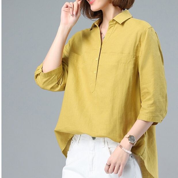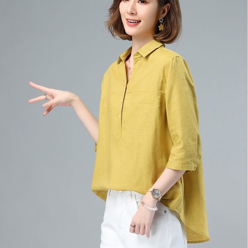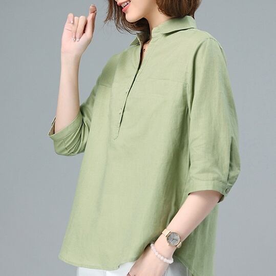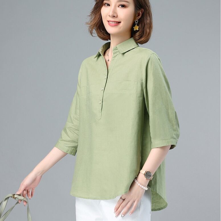 トップス シャツ ミディアム丈 プルオーバー 7分袖 角襟 ハーフボタン かわいい 大人可愛い きれいめ シンプル 上品 おしゃれ かっこいい レトロ きちんと こなれ感 個性的 主役級 存在感 抜け感 春 夏 秋 ナチュラル ベーシック キュート メンズライク 無地 レディース 女性用 ママ OL 通勤 オフィス 学生 通学 デート お出かけ お泊まり イベント 女子会 休日 アウトドア カフェ ショッピング レストラン コンパ レイヤード 重ね着 普段使い 着回し M L XL 2XL モテ
