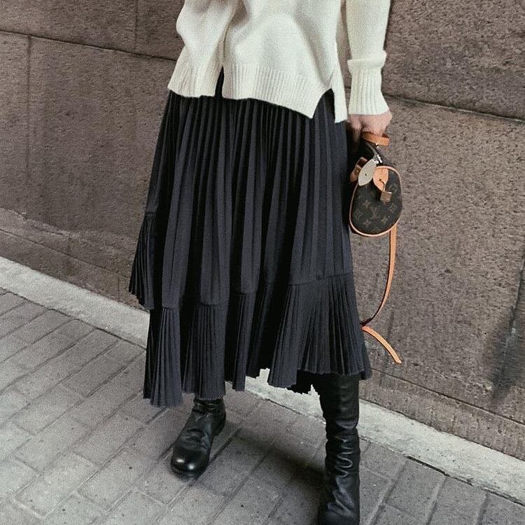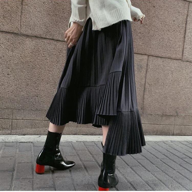 アシンメトリーなデザインがポイントで、どんなトップスとも相性抜群。