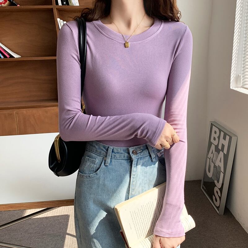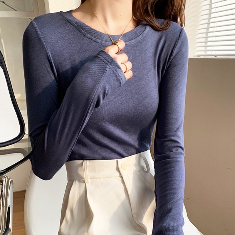 トップス カットソー プルオーバー ミディアム丈 長袖 ラウンドネック タイト インナー かわいい 大人可愛い きれいめ シンプル 上品 おしゃれ かっこいい レトロ こなれ感 個性的 主役級 存在感 抜け感 オールシーズン キュート ナチュラル ベーシック メンズライク クール 無地 レディース 女性用 OL 通勤 オフィス 学生 通学 デート お出かけ お泊まり イベント 女子会 休日 アウトドア カフェ ショッピング レストラン コンパ レイヤード 重ね着 普段使い 着回し S M L XL