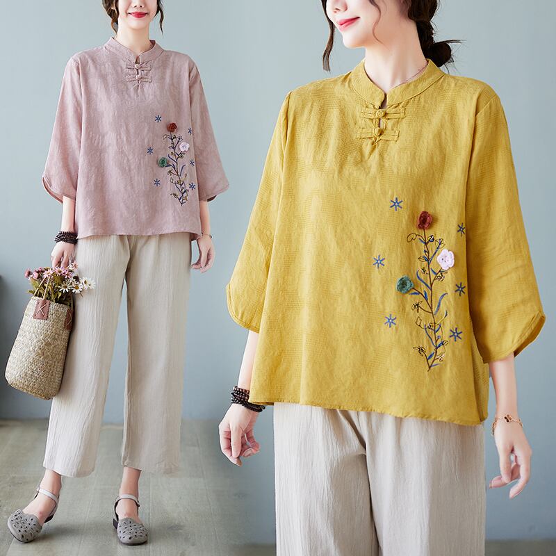 トップス ブラウス ミディアム丈 プルオーバー 7分袖 刺繡 薄手 かわいい 大人可愛い きれいめ シンプル 上品 おしゃれ かっこいい レトロ きちんと アジアン エスニック こなれ感 個性的 主役級 存在感 抜け感 春 夏 ナチュラル ベーシック キュート 無地 レディース 女性用 ママ OL 通勤 オフィス 学生 通学 デート お出かけ お泊まり イベント 女子会 休日 アウトドア カフェ ショッピング レストラン コンパ レイヤード 重ね着 普段使い 着回し M L XL 3XL ゆったり