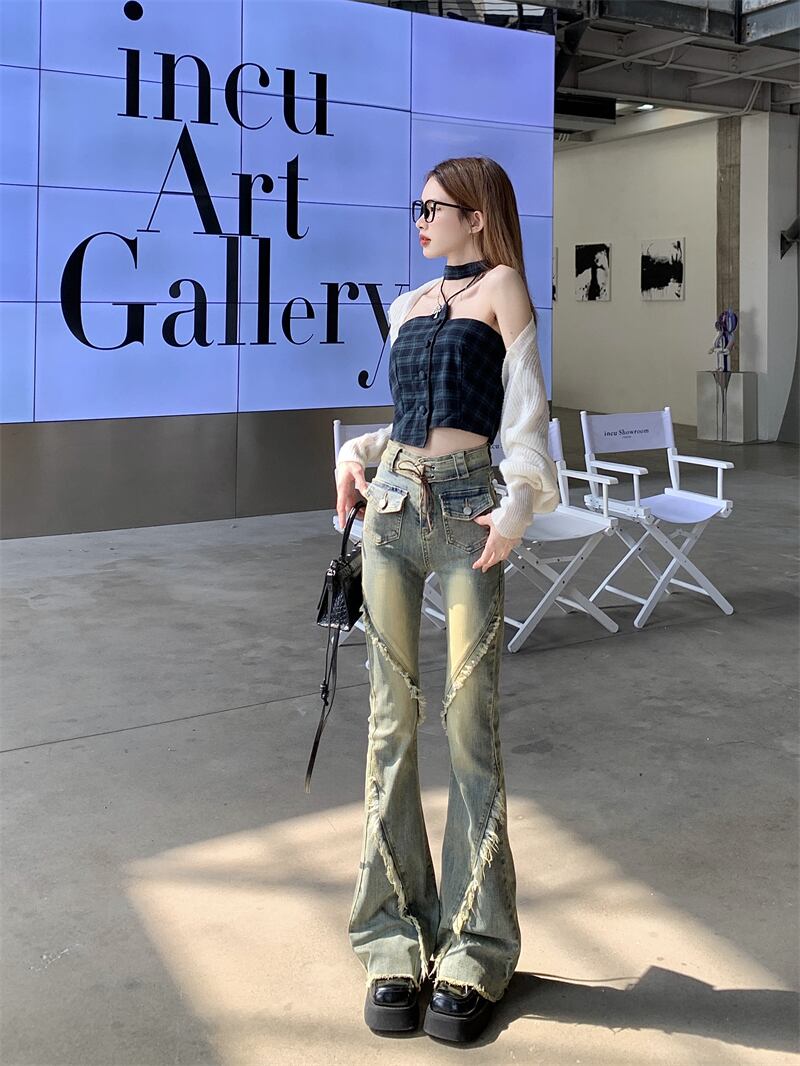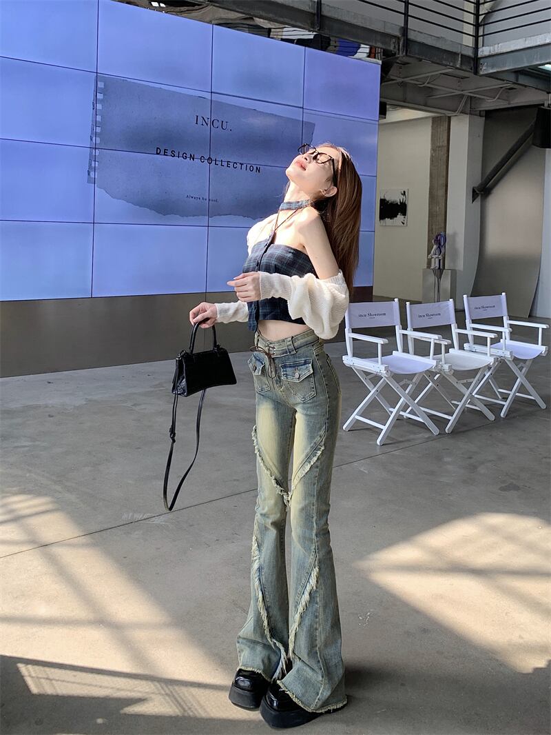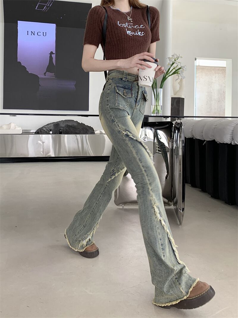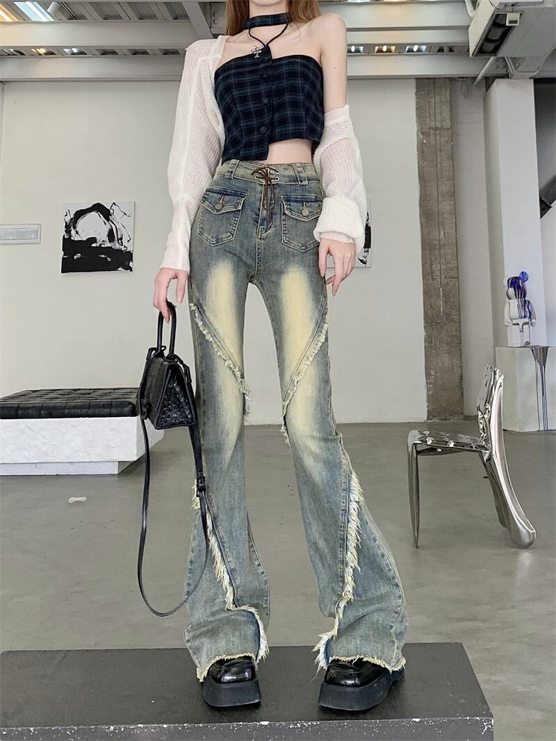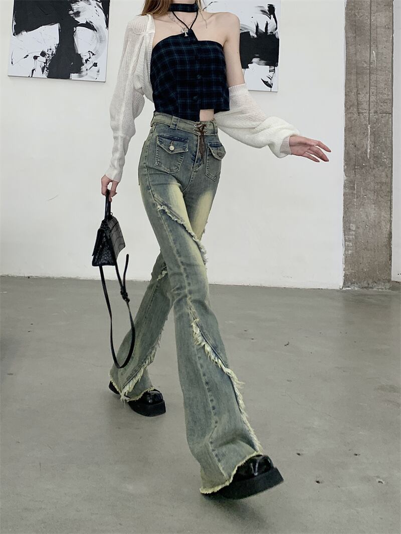 レディース パンツ ボトムス デニムパンツ ロング スリム 細身 ブーツカット ストリート デニム フリンジ かわいい 大人可愛い シンプル カジュアル おしゃれ かっこいい こなれ感 ラフ ガーリー ラブリー キュート 無地 春 夏 学生 学校 通学 デート お出かけ リゾート 旅行 女子会 ショッピング 韓国 コーデ 美脚 脚長 普段使い 着回し モテ トレンド 流行 インスタ映え S M L XL ブルー