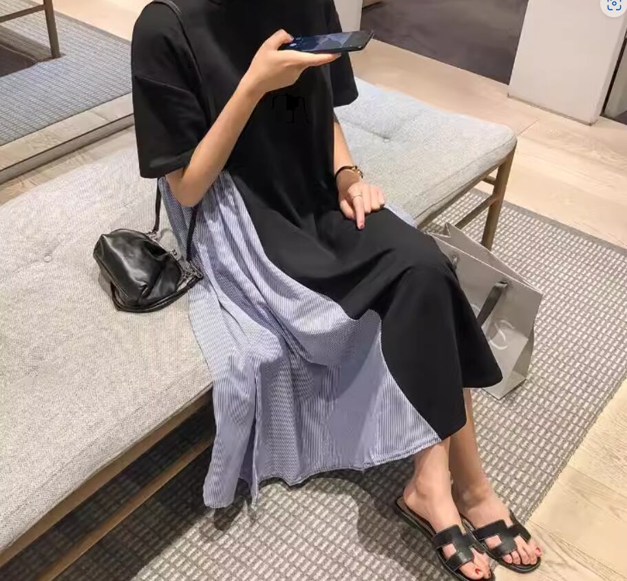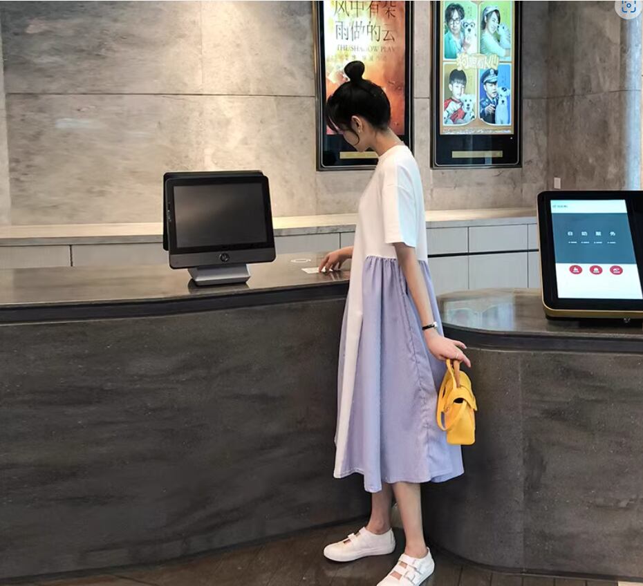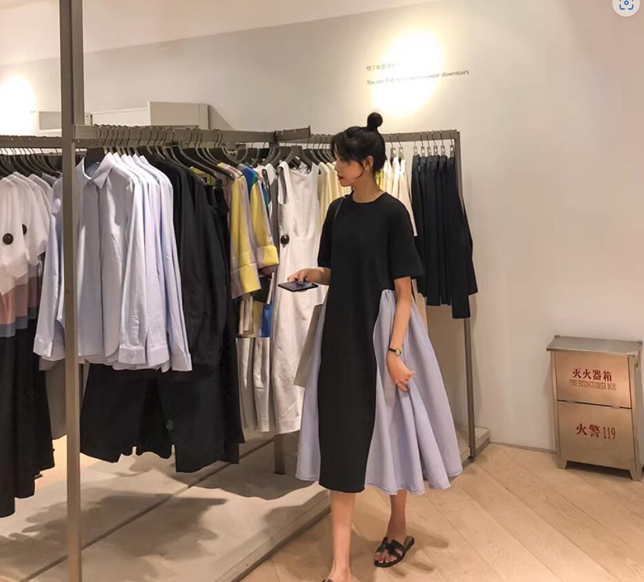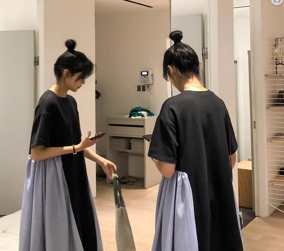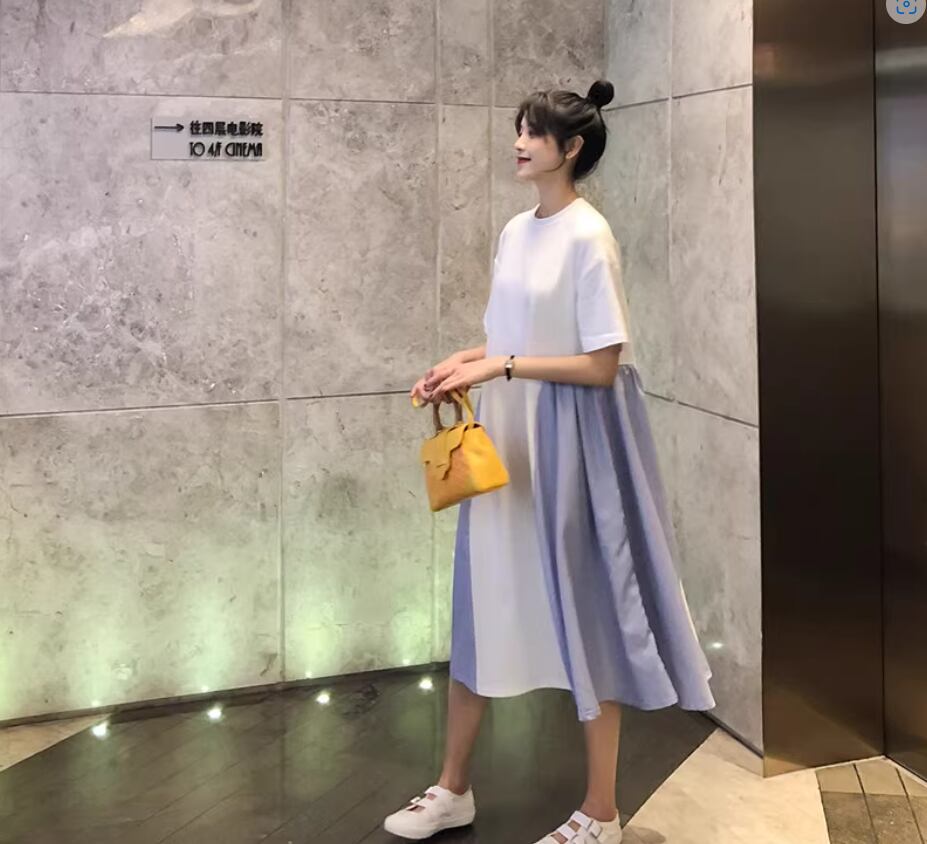 ワンピース ミディアム丈 袖あり 半袖 ラウンドネック Aライン 切り替えデザイン 綿 かわいい 大人可愛い カジュアル おしゃれ お洒落 こなれ感 存在感 無地 夏 10代 20代 30代 40代 レディース 女性用 ママ マタニティ お出かけ 休日 着回し 普段使い 重ね着 楽ちん 体型カバー M L XL 2XL 白 ホワイト 黒 ブラック バイカラー