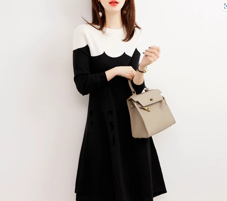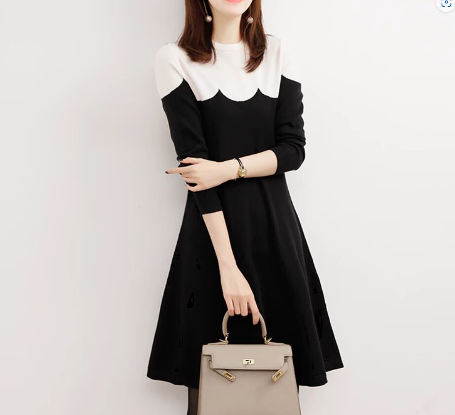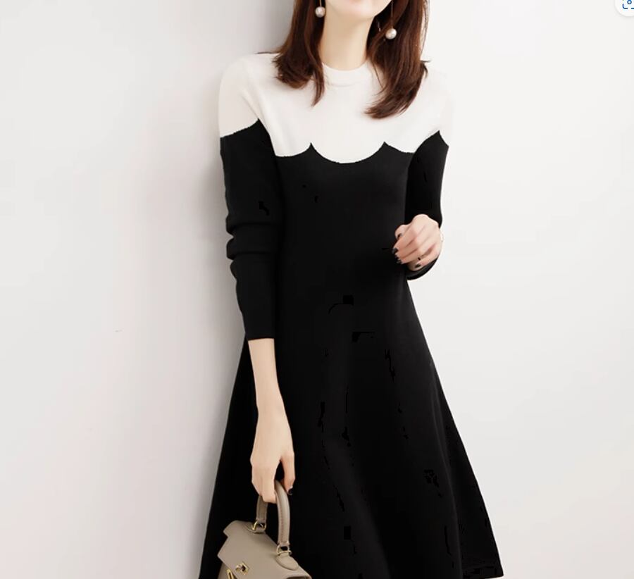 バイカラーデザインがおしゃれなニットワンピース